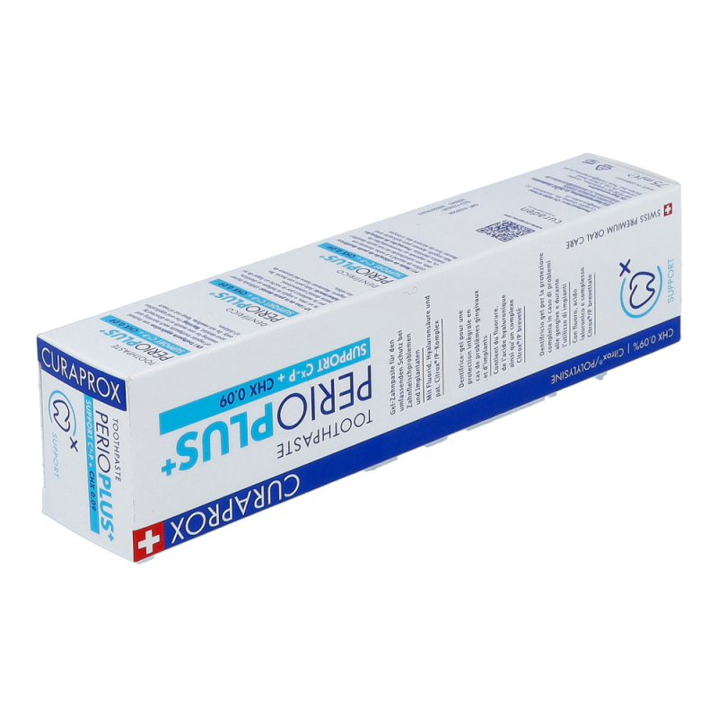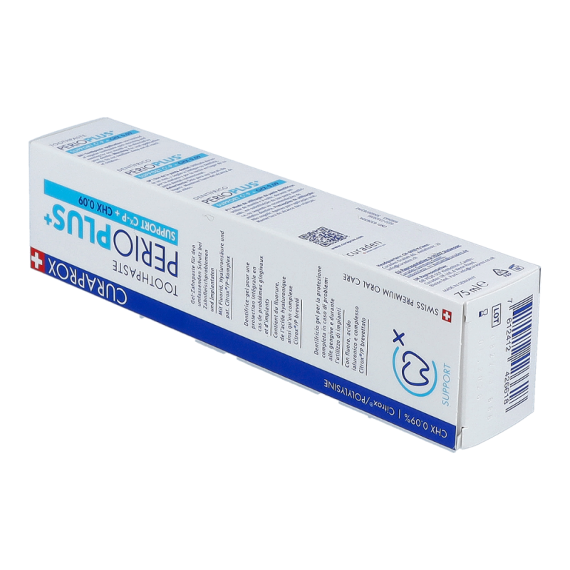 Perio Plus+ Support Zahnpasta ist frei von Sodium- Lauryl-Sulfat (SLS) und sichert so den Erfolg von CHX-Therapien gleichzeitig trägt es dank eigener Wirkstoffe zum Therapie-Erfolg bei.