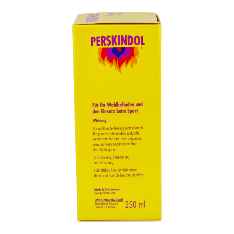 Perskindol Aktiv Fluid kann auch großflächig angewendet werden. Es zieht rasch in die Haut ein und hinterlässt keinen Film auf der Haut. Besonders für SportlerInnen eignet sich das Produkt daher ideal. Es unterstützt vor und während dem Sport das Aufwärmen der Muskeln und dient der Vorbeugung, sowie Behandlung von Muskelkater und Krämpfen. Nach dem Sport dient das Fluid der Entspannung, Erfrischung und Erholung.