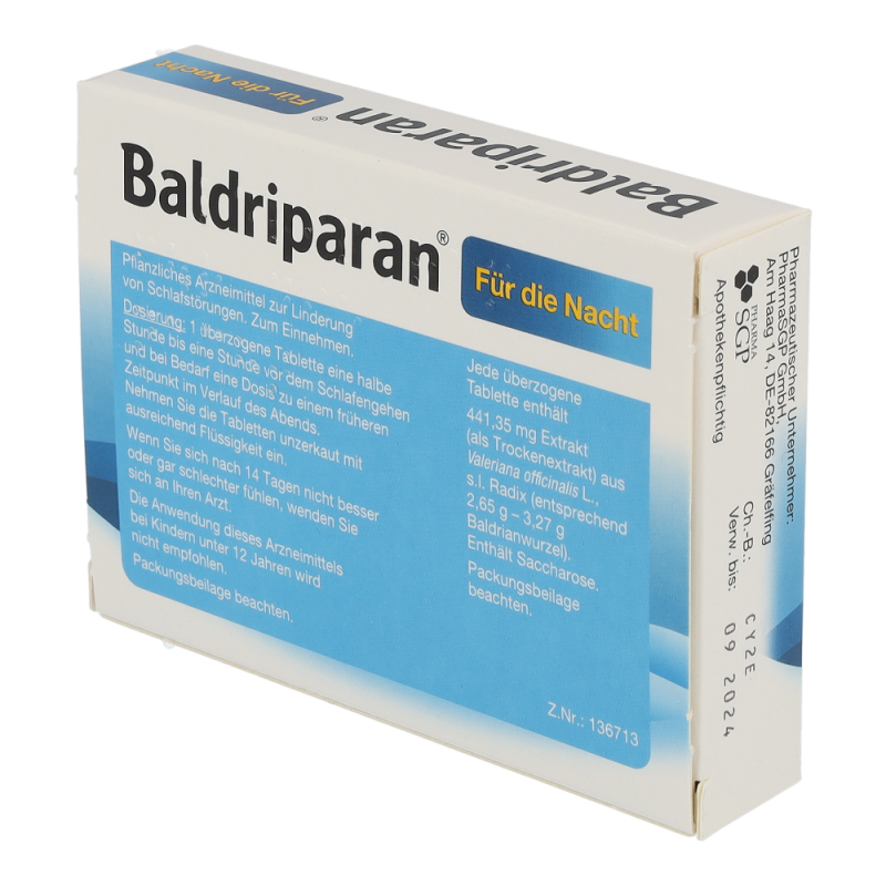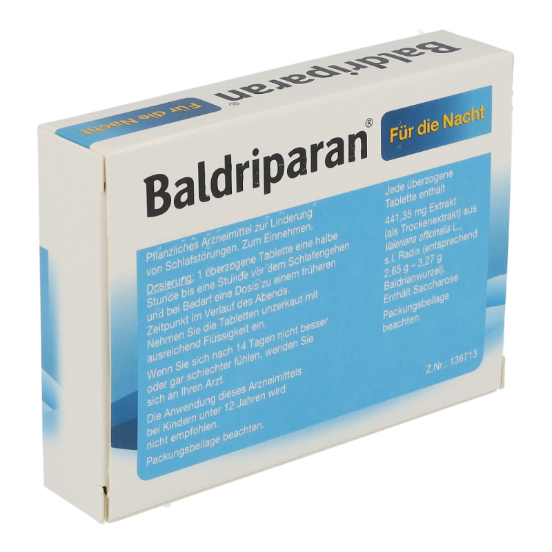 Baldriparan für die Nacht ist ein pflanzliches Arzneimittel das einen Trockenextrakt aus Baldrianwurzel enthält. Dieses Arzneimittel wird zur Linderung von Schlafstörungen bei Erwachsenen und Jugendlichen ab 12 Jahren angewendet – jetzt online bestellen und wieder durchschlafen!