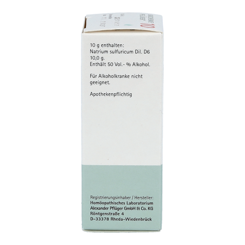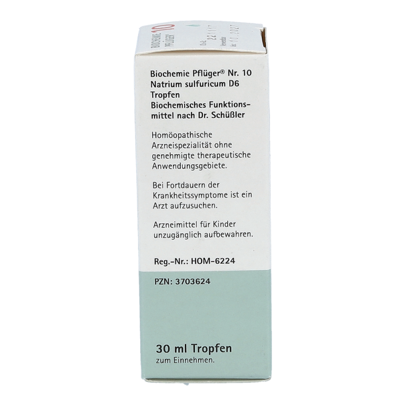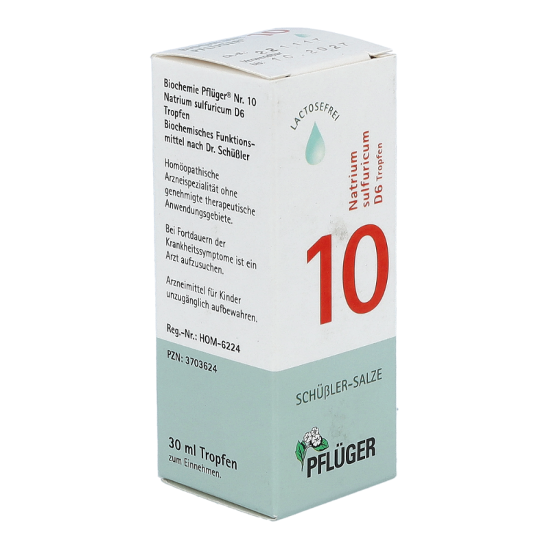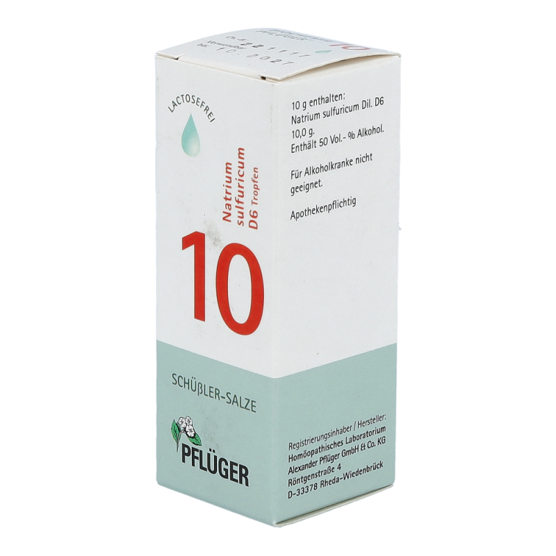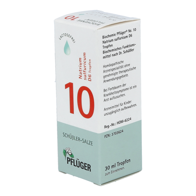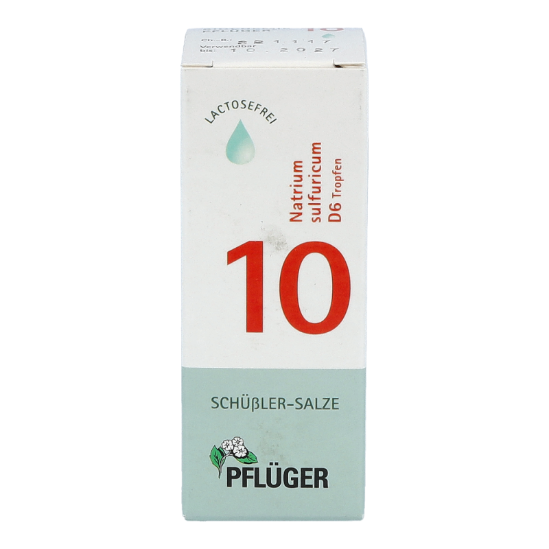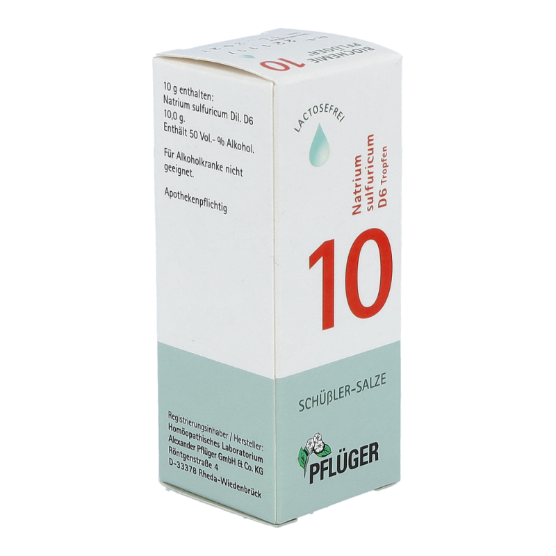 Pflüger Dr. Schüßler Nr. 10 Natrium Sulfuricum hilft, die Körperflüssigkeiten zu regulieren. Zudem unterstützt es die Ausscheidung alles „Über-Flüssigen†und ist damit ein wichtiges Mittel zur Entschlackung und Entgiftung des Organismus. Es ist daher auch ein wichtiges Mittel für den Erhalt der Funktion und der Regeneration der Ausscheidungsorgane Leber, Galle, Niere, Blase und Dickdarm.