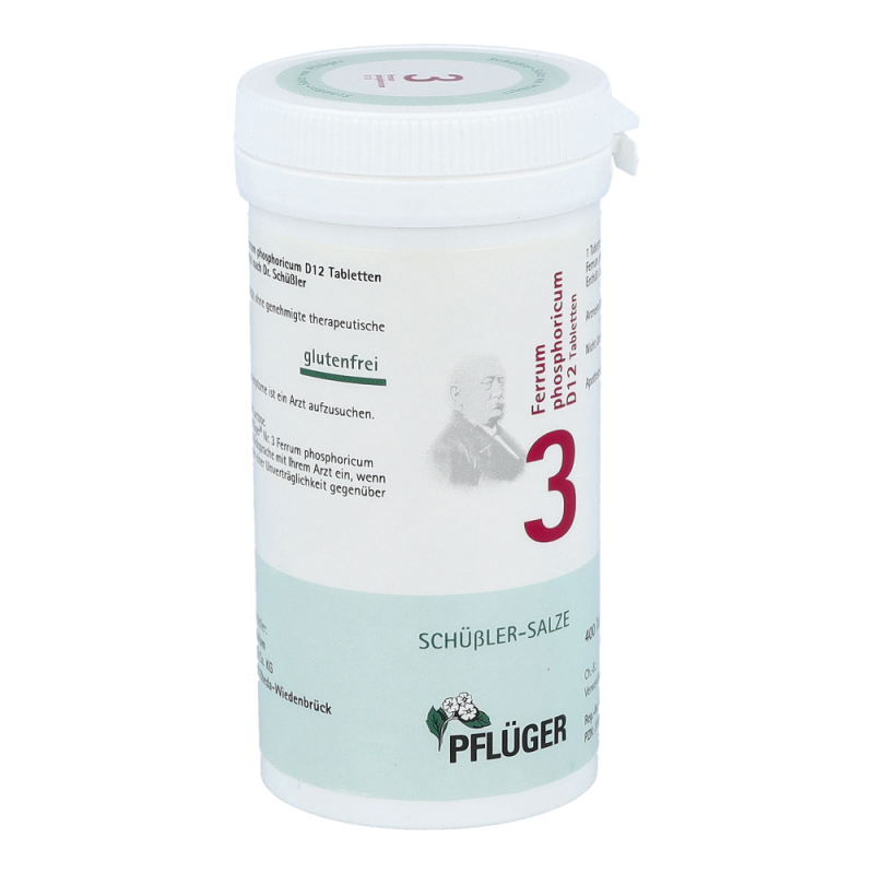 Pflüger Dr. Schüßler Nr. 3 Ferrum Phosphoricum ist der Mineralstoff für alle plötzlich auftretenden akuten Gesundheitsstörungen und ist daher auch als Erste-Hilfe-Salz bekannt. Es unterstützt den Sauerstofftransport im Körper und ist deshalb das Mittel der Wahl zur Anregung der blutbildenden Gewebe und des Immunsystems.