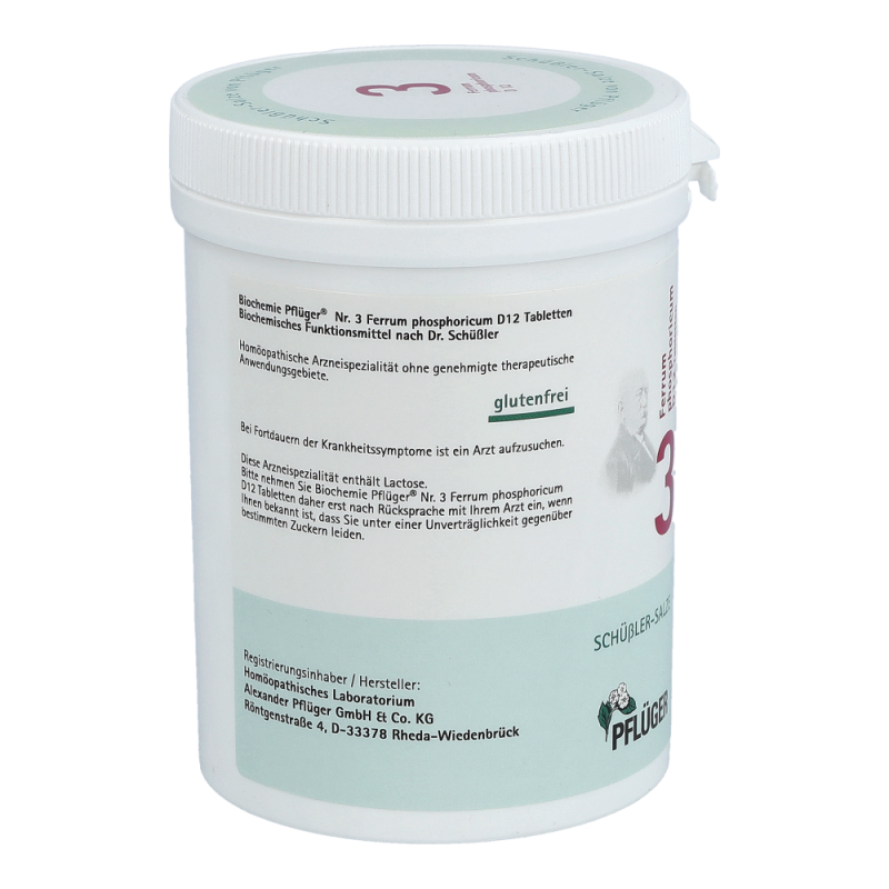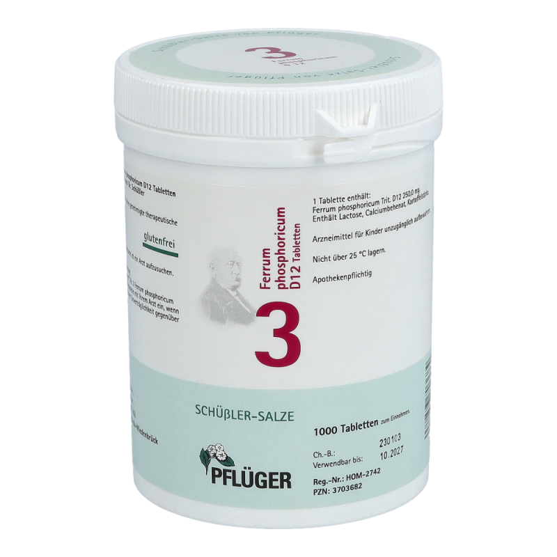 Pflüger Dr. Schüßler Nr. 3 Ferrum Phosphoricum ist der Mineralstoff für alle plötzlich auftretenden akuten Gesundheitsstörungen und ist daher auch als Erste-Hilfe-Salz bekannt. Es unterstützt den Sauerstofftransport im Körper und ist deshalb das Mittel der Wahl zur Anregung der blutbildenden Gewebe und des Immunsystems.