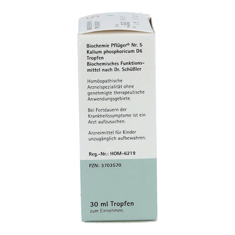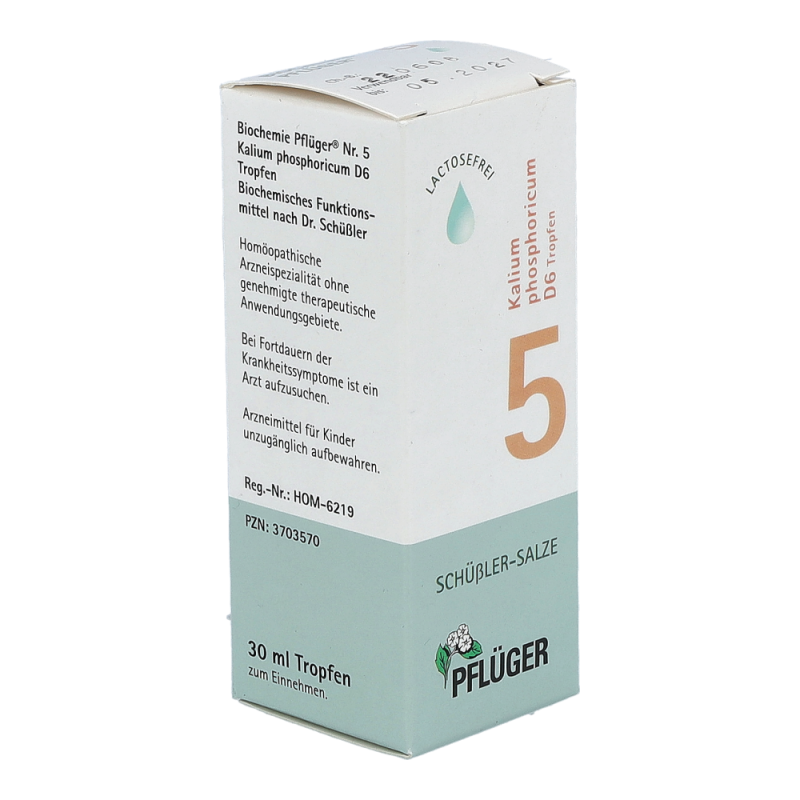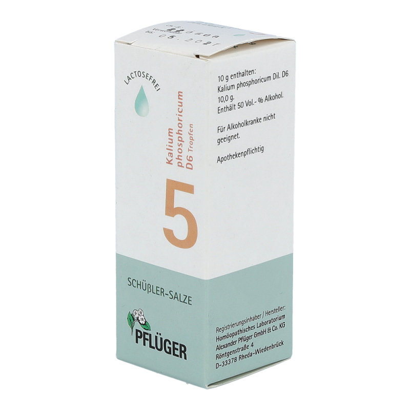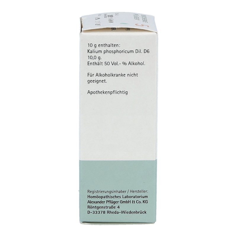 Pflüger Dr. Schüßler Nr. 5 Kalium Phosphoricum wird bei starken nervlichen und geistigen Belastungen, wie etwa Prüfungen angewendet, da der Körper in diesen Situationen viel Kalium phosphoricum verbraucht. Der Mineralstoff kommt in allen Gehirn- und Nervenzellen sowie in den Muskeln und im Blut vor. Bei seelischer und körperlicher Erschöpfung ermöglicht er Aufbau, Regeneration und frische Energie.