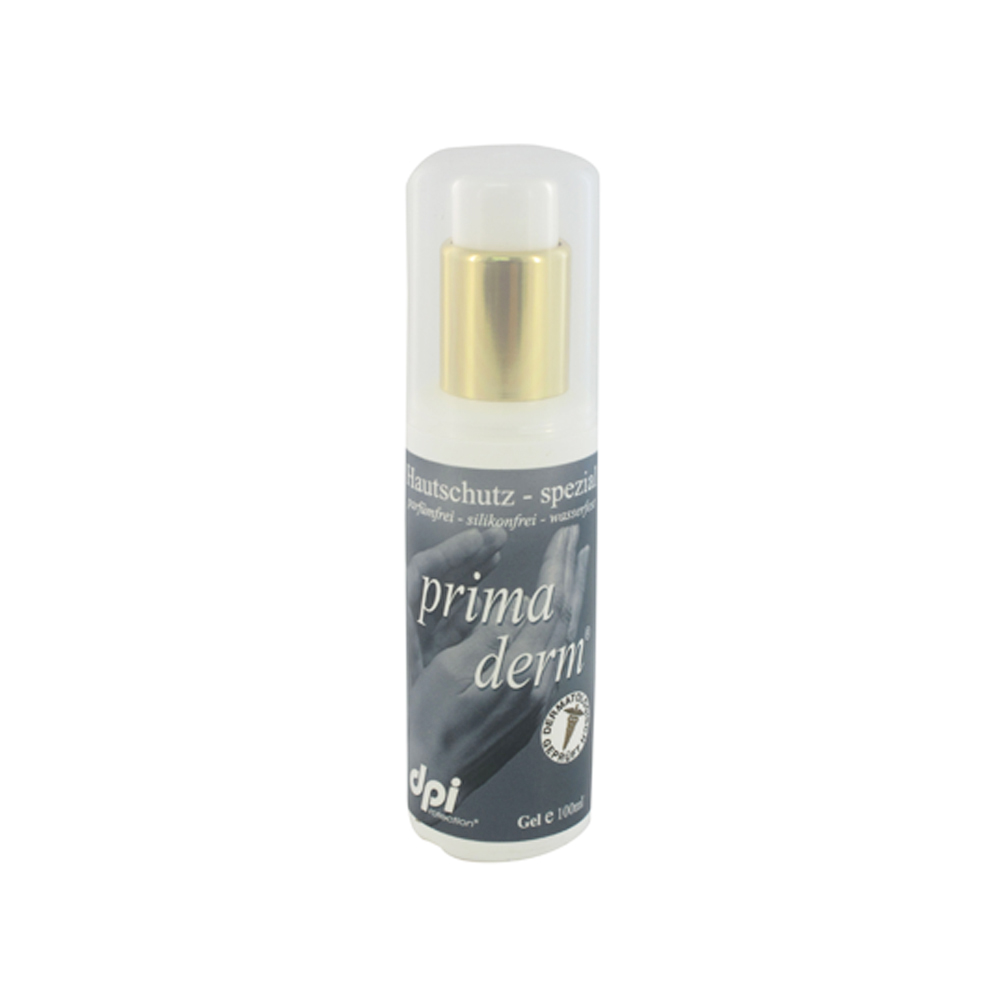 primaDERM Hautschutzgel ist ein einzigartiger am Markt bestehender, wasserfester Hautschutz, welcher selbst unter mehrfacher Händereinigung, sowie starken Beanspruchungen bis zu 4 Stunden bestehen bleibt. Das Gel baut einen universellen Schutz gegen Allergene, trockene, wässerige und ölige Stoffe auf.