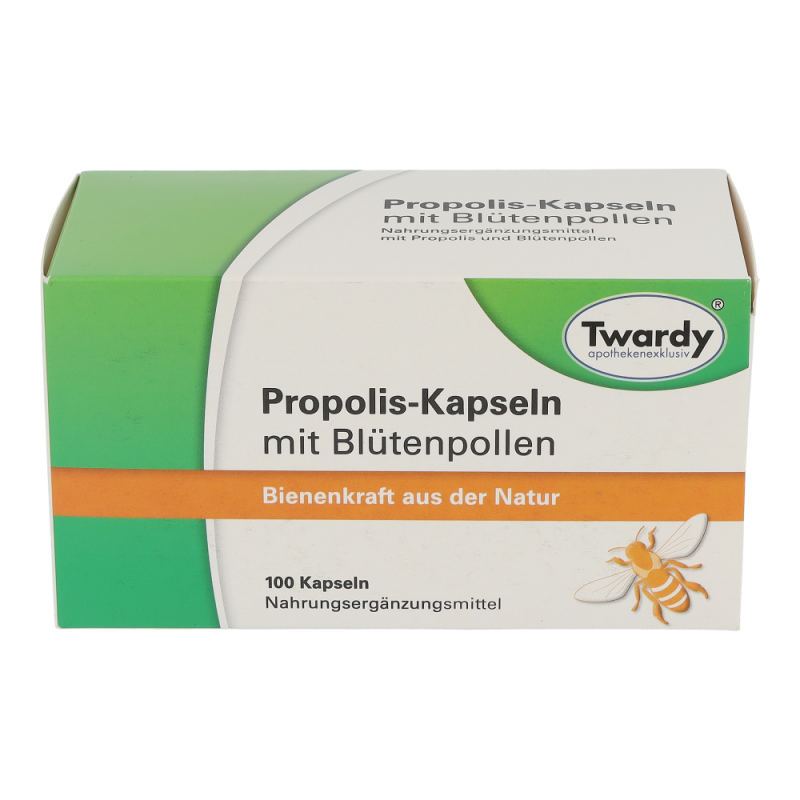 Rapsöl, Gelatine, Feuchthaltemittel: Glycerin; Blütenpollen-Zubereitung [Blütenpollen-Pulver (95%), Trennmittel: Siliciumdioxid] (8,2%), Propolis-Extrakt (6,2%), Palmöl, Verdickungsmittel: Bienenwachs gelb, Mono- und Diglyceride von Speisefettsäuren, Emulgator: Sonnenblumenlecithin, Farbstoffe: Titandioxid, Eisenoxide und -hydroxide.