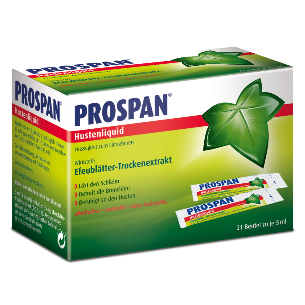 Prospan Hustenliquid ist ein pflanzliches Arzneimittel zur Behandlung von katarrhalischen Erkrankungen der Atemwege. Es lindert den Hustenreiz und löst zähen Schleim.