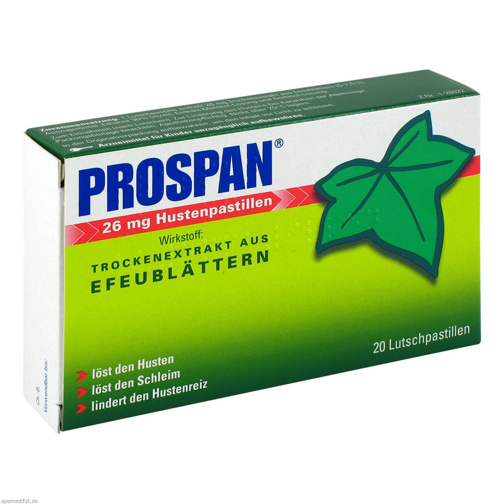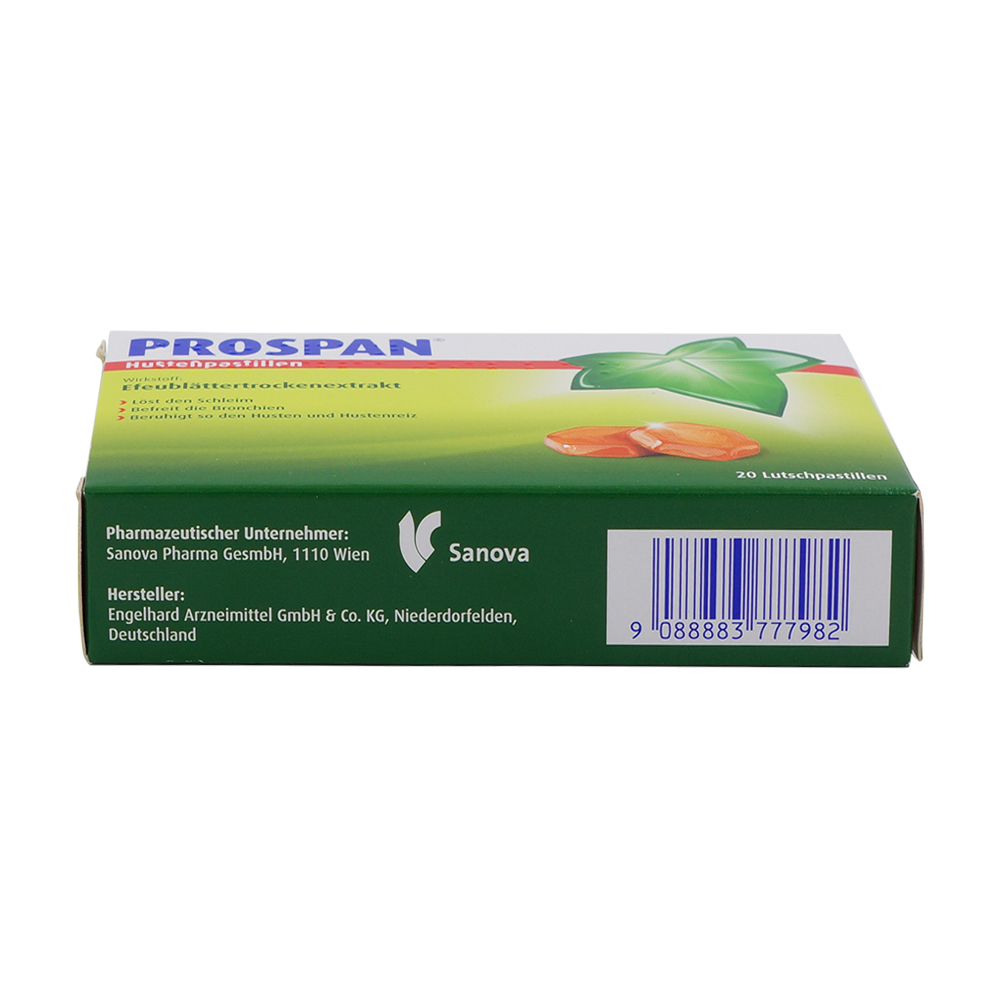 Prospan Hustenpastillen sind ein pflanzliches Arzneimittel zur Schleimlösung bei Husten im Zusammenhang mit Erkältungen. Die Hustenpastillen erleichtern das Abhusten, entspannen die Bronchialmuskulatur und beruhigen so den Husten.