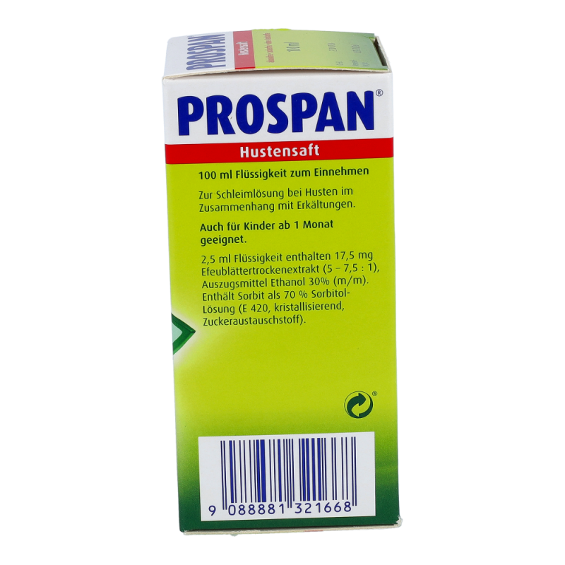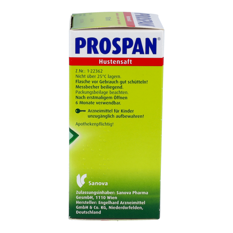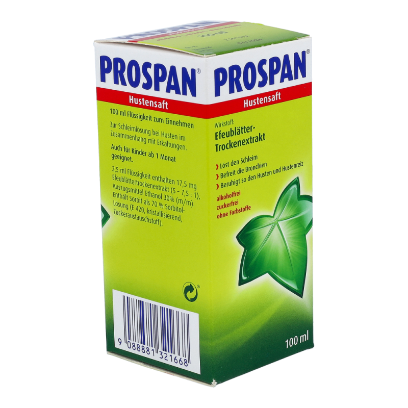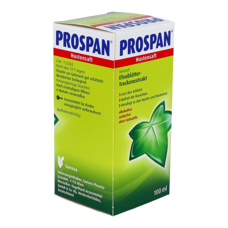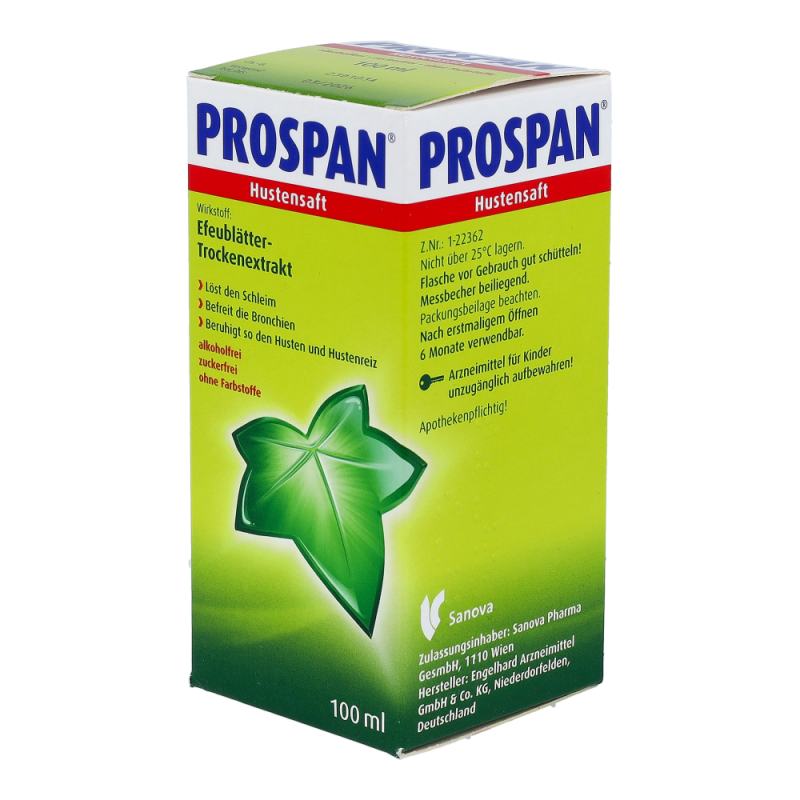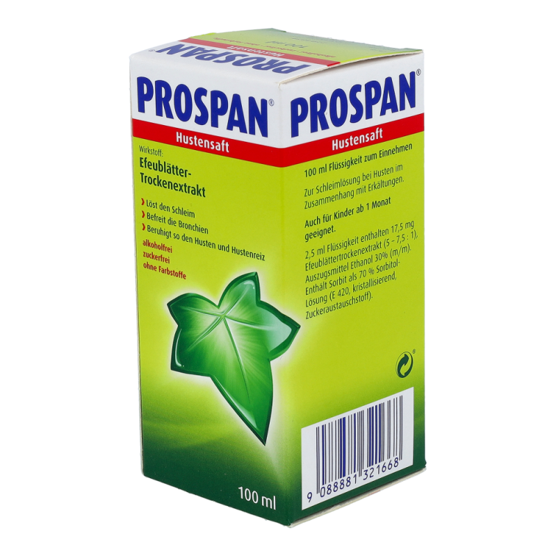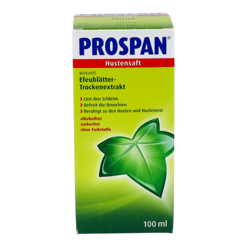 Prospan Hustensaft ist ein pflanzliches Arzneimittel zur Schleimlösung bei Husten im Zusammenhang mit Erkältungen. Der Hustensaft erleichtert das Abhusten, entspannt die Bronchialmuskulatur und beruhigt so den Husten.