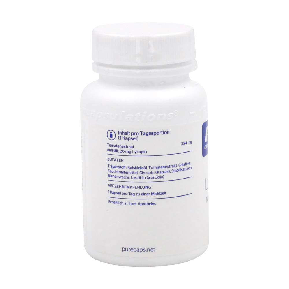 Pure encapsules Lycopene Kapseln enthalten den Pflanzenstoff Lycopin aus Tomatenextrakt, gelöst mit Reiskleieöl für eine bessere Bioverfügbarkeit. Im menschlichen Organismus kommt Lycopin in Nebennieren, Leber, Hoden und der Prostata vor und schützt den Organismus vor schädlichen Umwelteinflüssen.