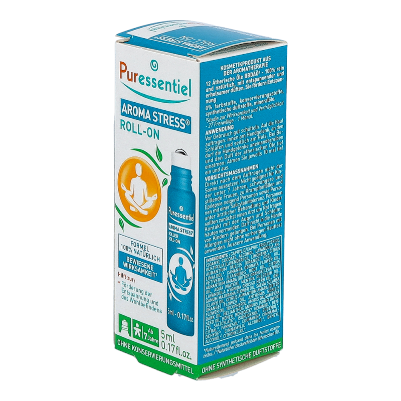 Puressentiel Stress Roll-on mit 12 beruhigenden, erholsamen und entspannenden ätherischen Ölen hilft die Spannungen zu lockern und Bekommenheitsgefühle und Nervosität oder Verdrossenheitsgefühle im Alltag zu verschwinden – dieses und weitere Produkte von Puressentiel mit hohem Rabatt bestellen!