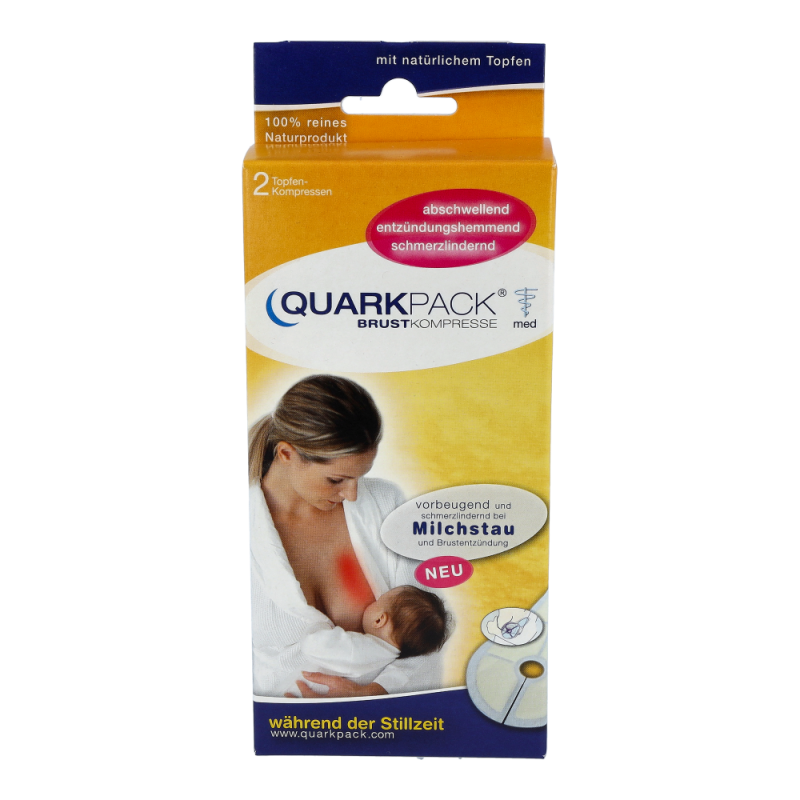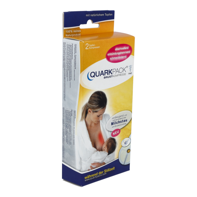 Das Medizinprodukt QUARKPACK Brustkompresse, ein 100% reines Naturprodukt, ist die moderne, innovative Art des altbewährten Topfenwickels und hat eine ideale Passform zur Behandlung der Brust. Die Brustkompresse besteht aus einer Folie aus Kunststoff, auf welche ein weiches, anschmiegsames, wasserdurchlässiges Vlies mit Trockentopfenpulver angebracht ist. Die Kompresse in kaltes oder warmes Wasser legen, in ca. 2 Minuten ist das Topfenpulver feucht und die Kompresse anwendungsfertig. Die Kühlwirkung wird verstärkt, wenn die eingeweichte Kompresse vor Anwendung etwa 20 Minuten in den Kühlschrank gelegt wird. Kein Besorgen von Topfen mehr, kein aufwändiges Bestreichen von Tüchern, keine unangenehmen, krümeligen Reste beim Abnehmen der Kompresse. QUARKPACK Brustkompresse wirkt wie frischer Topfen, abschwellend, entzündungshemmend und schmerzlindernd. Wird vorbeugend und während der Stillzeit angewendet bei Milchstau und Brustentzündung (Mastitis). Auch bei Brustkrebs nach der Strahlungstherapie empfohlen, bei Rötungen, Schwellungen, Lymphstau. 100% reines Naturprodukt.