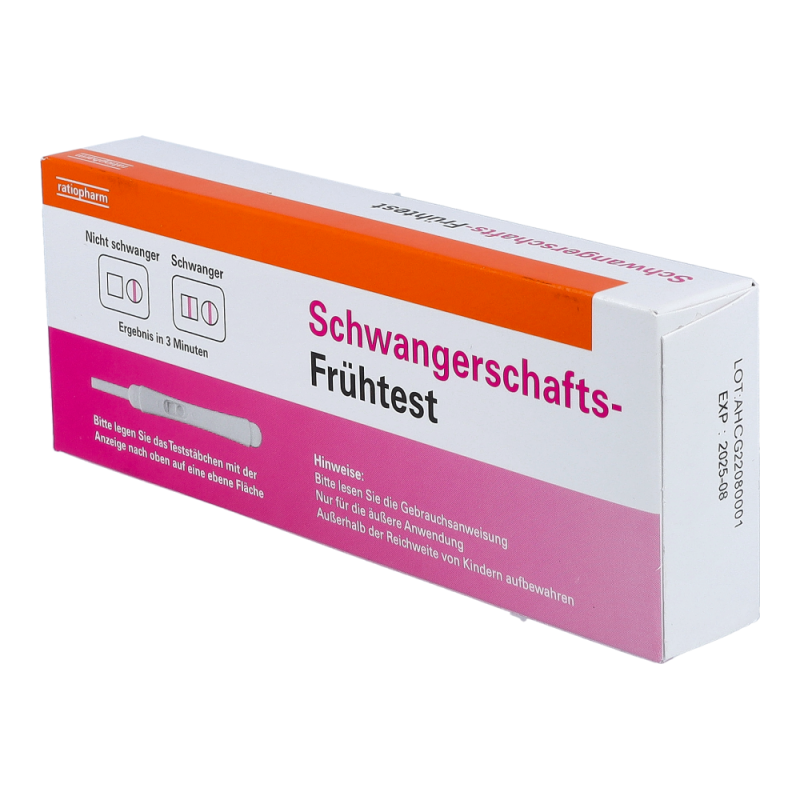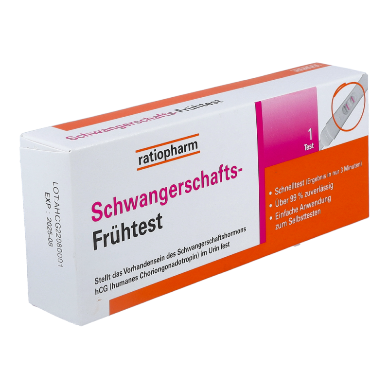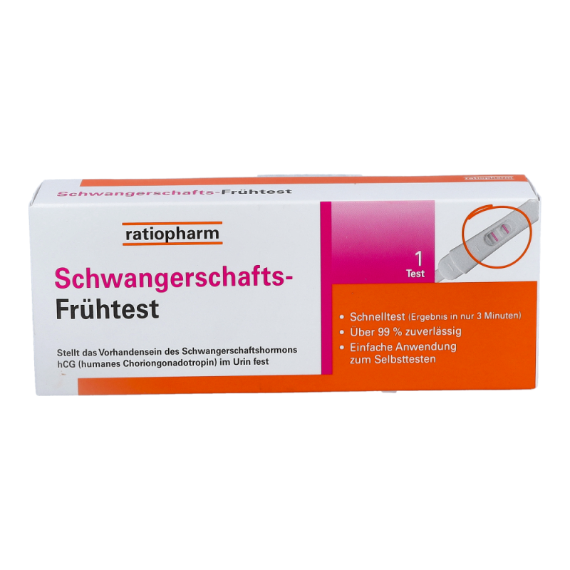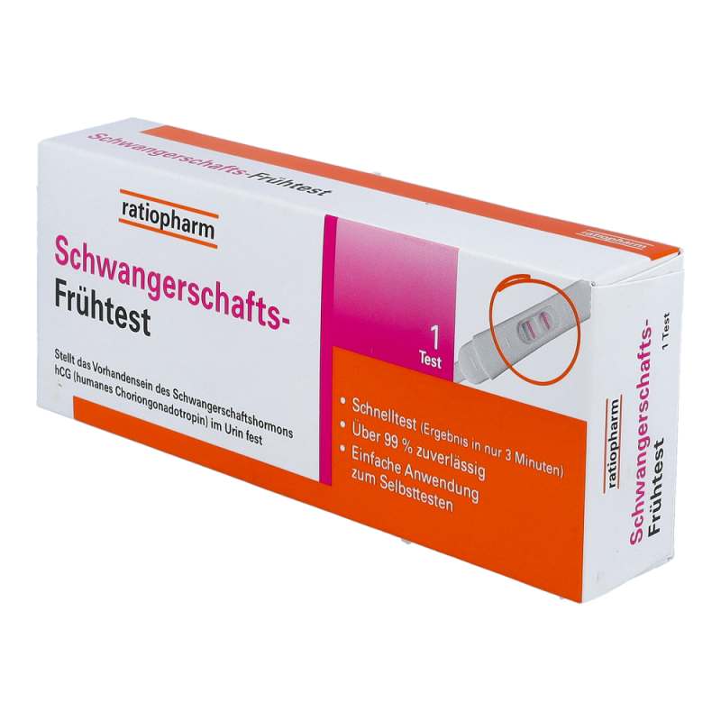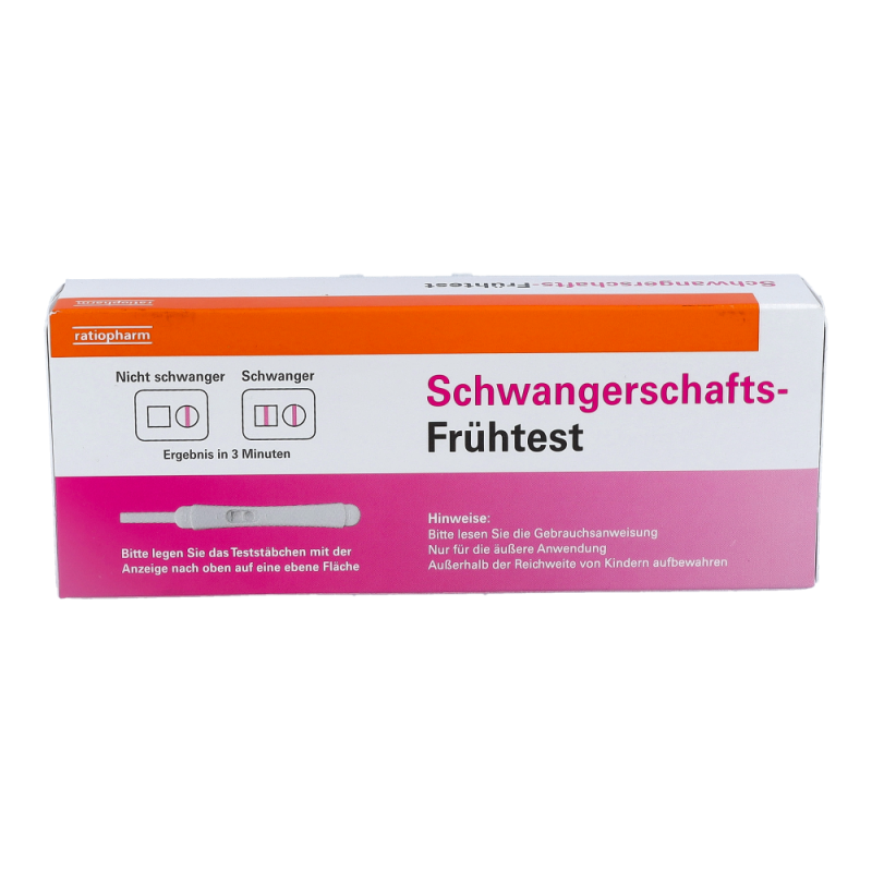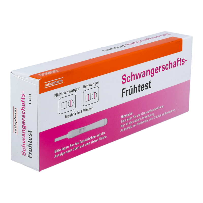 Ratiopharm Schwangerschafts-Frühtest zur frühzeitigen Erkennung einer Schwangerschaft. Ergebnis in nur 3 Minuten mit über 99% Zuverlässigkeit. Einfache Anwendung. Erkennung der Schwangerschaft über das Schwangerschaftshormon hCG (humanes Choriongonadotropin) im Urin.