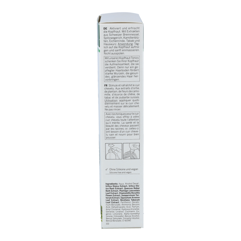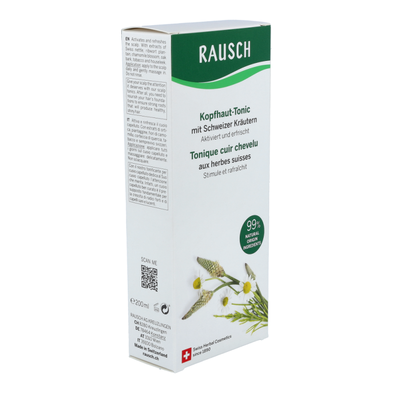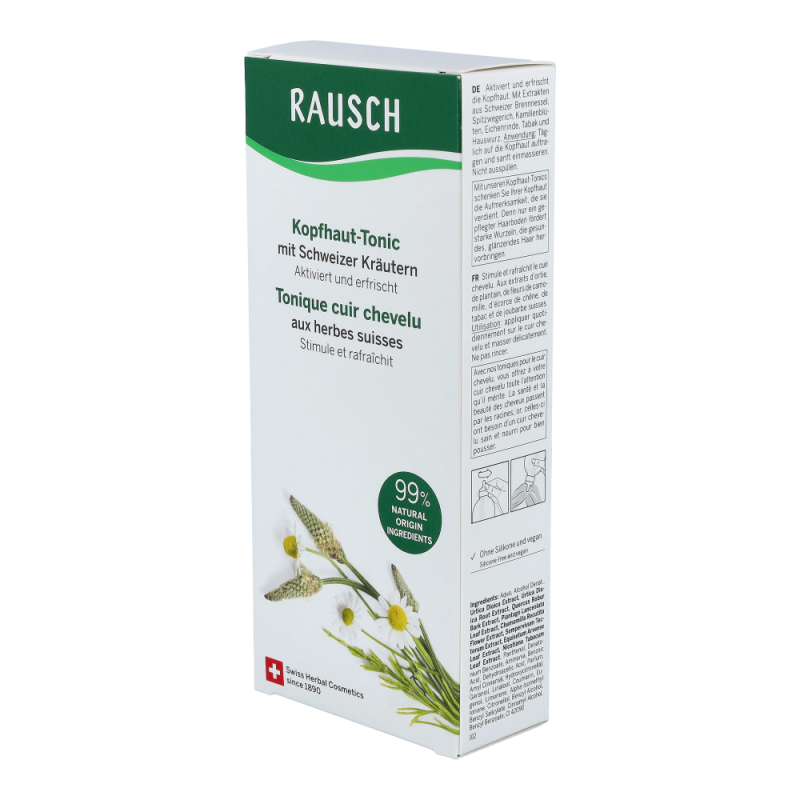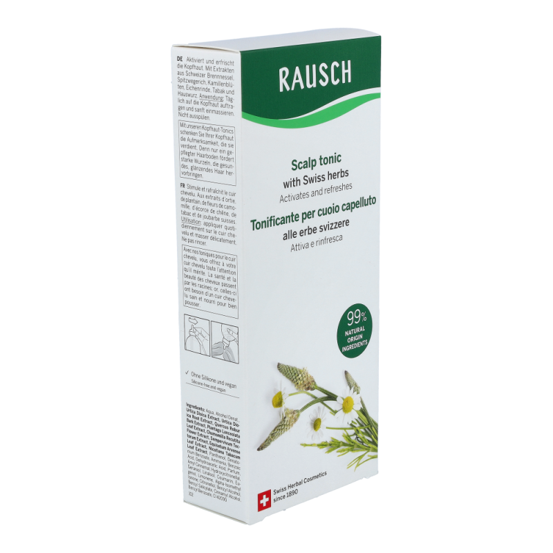 Rausch Schweizer Kräuter Haartonic für normale Haut stärkt den Haarwuchs und beugt Haarausfall vor. Dank Brennnessel, Spitzwegerich, Eichenrinde und Hauswurz.