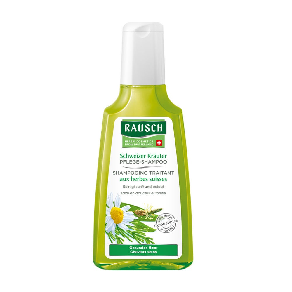 Rausch Shampoo reinigt sanft und pflegt. Kräftigt und schützt die gesunde Kopfhaut und schönes Haar. Mit kostbaren Extrakten aus Schweizer Kamillenblüten, Zinnkraut und Spitzwegerich.