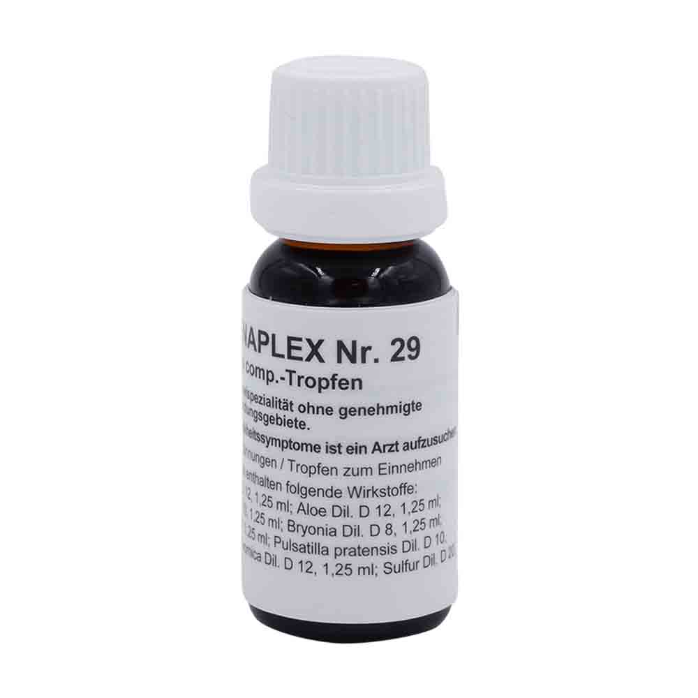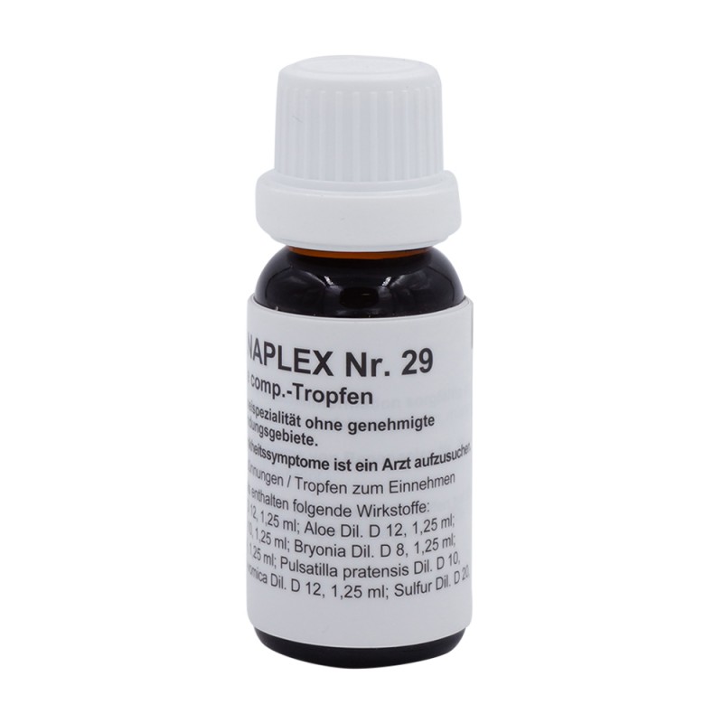 Regenaplex Nr. 29 hilft bei Durchblutungsstörungen, sowie Menstruationsspasmen. Die quasi nach einem Baukastensystem zusammengestellten Regenaplexe sind homöopathische Komplexmittel mit jeweiligen Nummernbezeichnungen.