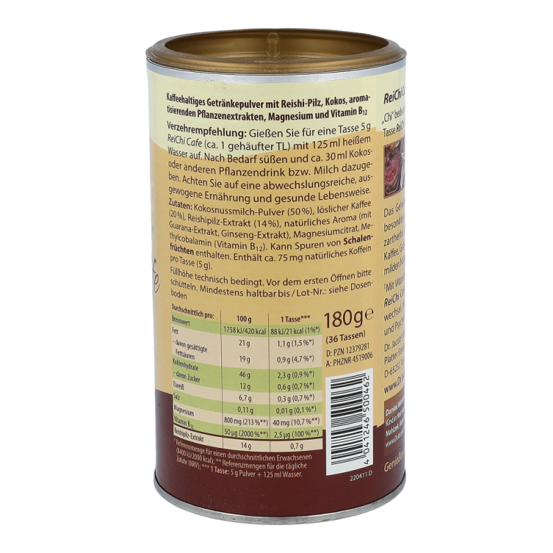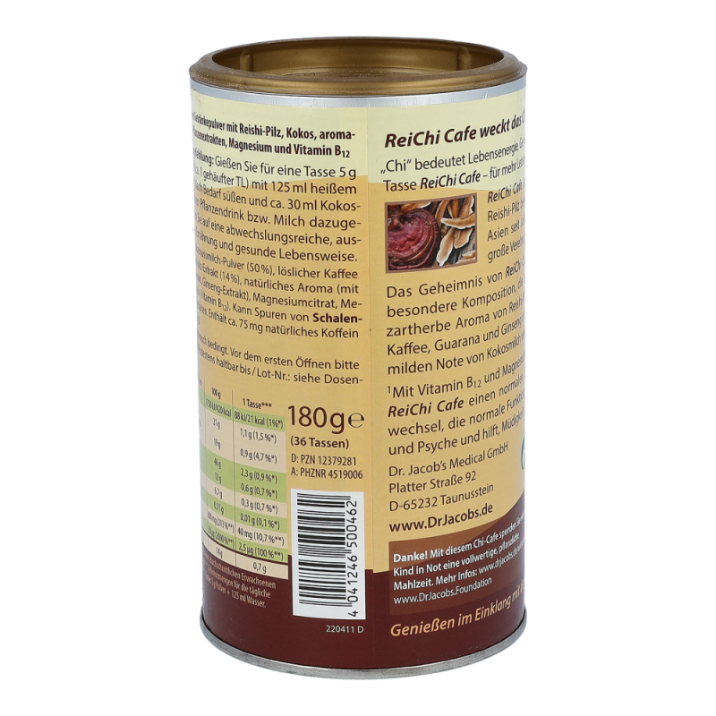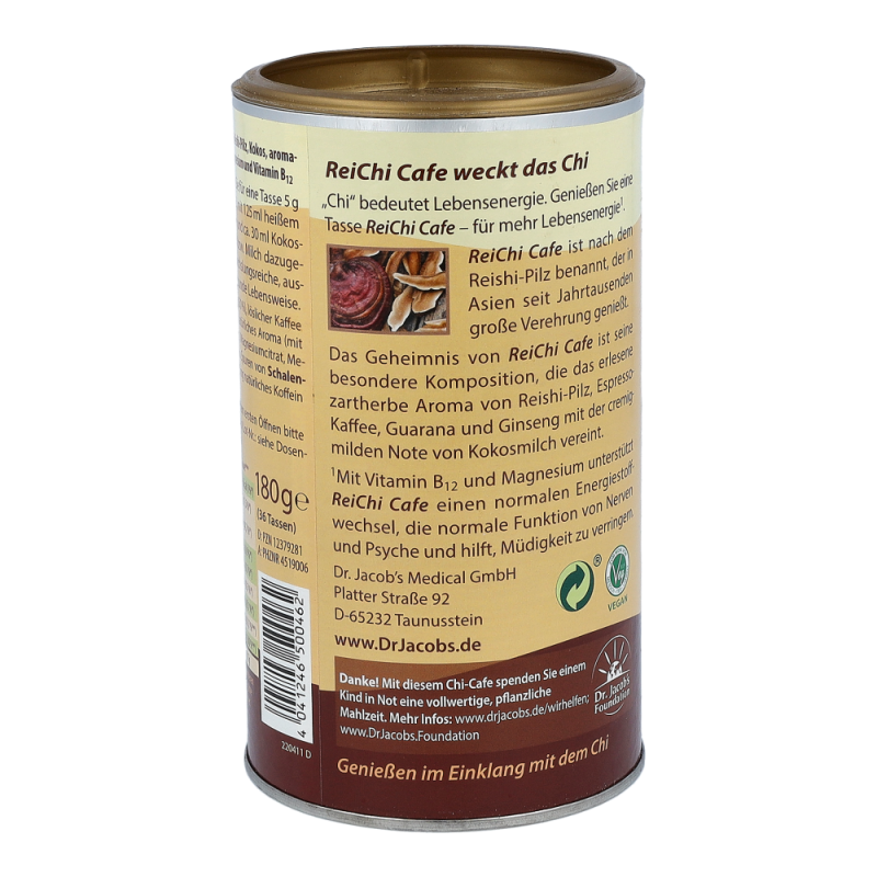ReiChi Cafe hat seinen Namen vom Reishi-Pilz, der in Asien bereits seit Jahrtausenden große Verehrung genießt. „Chi“ heißt übersetzt Lebenskraft. Erwecken Sie Ihre Lebenskraft* und genießen Sie eine Tasse ReiChi Cafe. Das Besondere an ReiChi Cafe ist seine einzigartige Komposition, die das erlesene zartherbe Aroma von Reishi-Pilz, Ginseng, Guarana und Espresso-Kaffee mit der mild-cremigen Note von Kokosmilch vereint – nur mit hohem Rabatt, denn wir pulverisieren Preise!