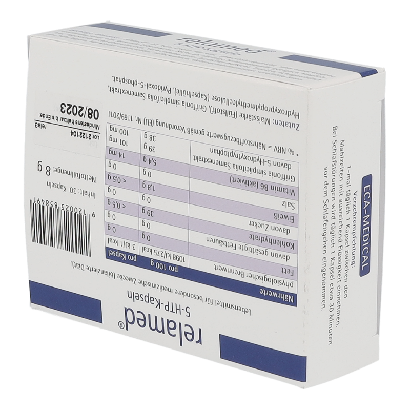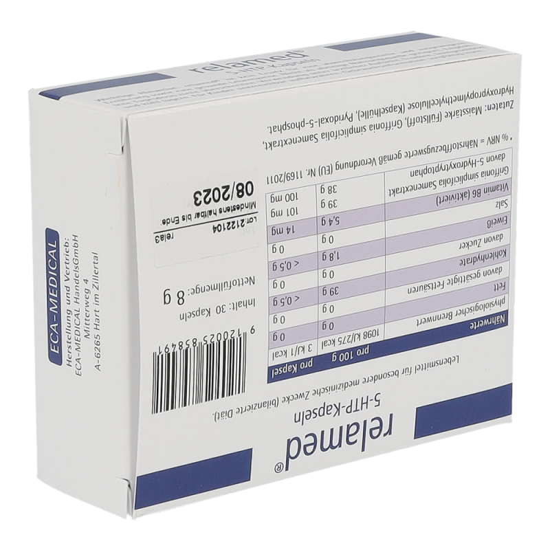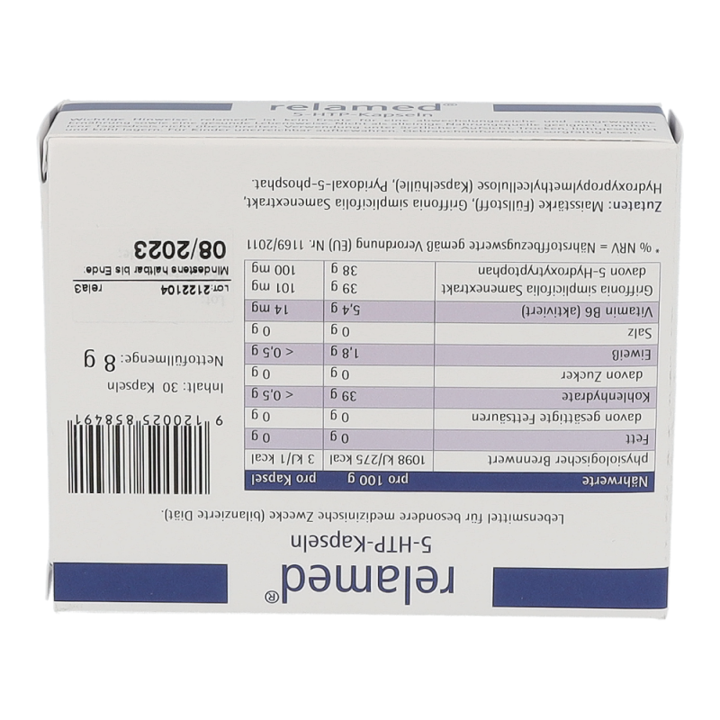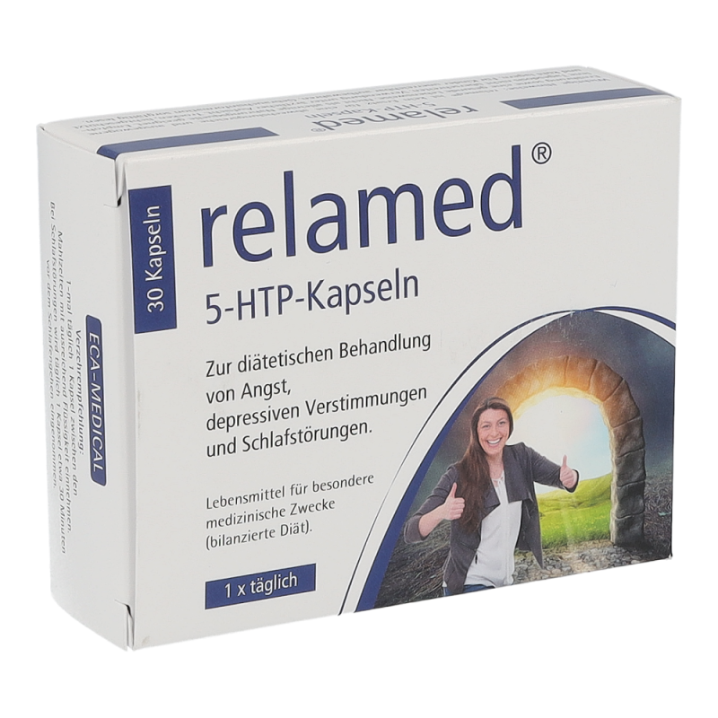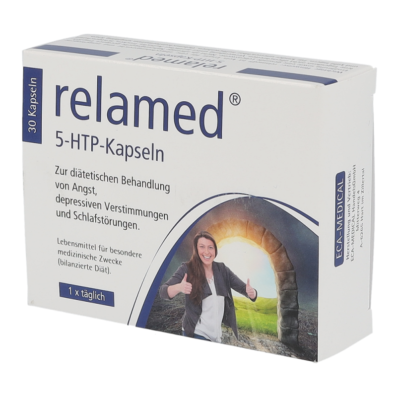 Relamed 5-HTP-Kapseln enthält hochkonzentriertes 5-Hydroxytryptophan (5-HTP) aus dem pflanzlichen Extrakt von Griffonia simplicifolia (afrikanische Schwarzbohne) und zusätzlich hochdosiertes Vitamin B6 in seiner biologisch aktiven Form und hilft somit bei der diätetischen Behandlung von Angst, depressiven Verstimmungen und Schlafstörungen.