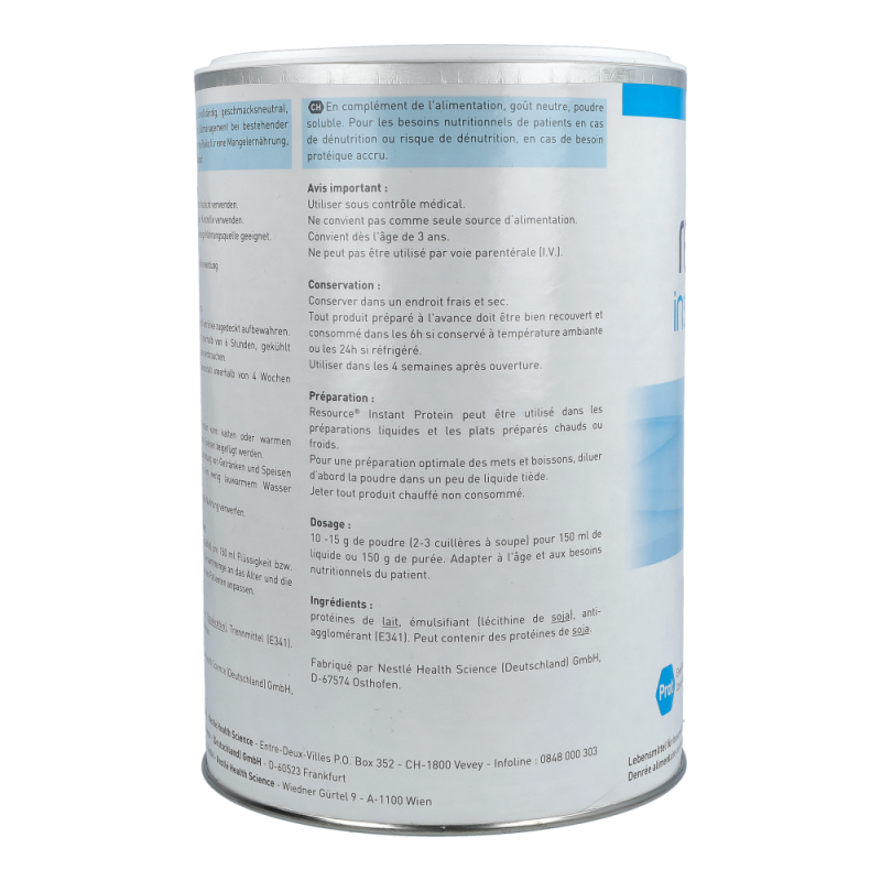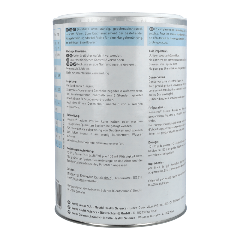 Resource Instant protein kann kalten oder warmen Flüssigkeiten oder Speisen zugefügt werden. Bitte erst nach dem Kochen hinzufügen.