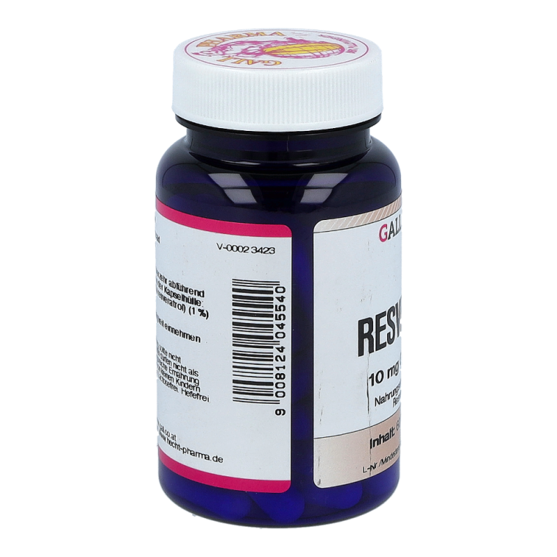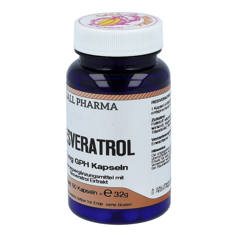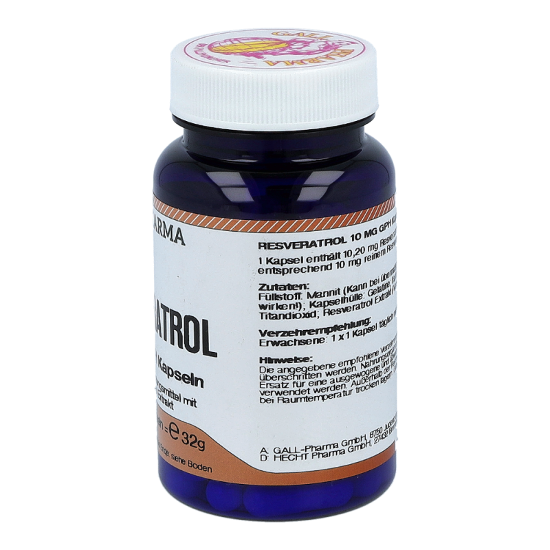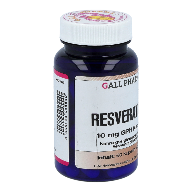 Gall Pharma Resveratrol 10 mg Kapseln 60 Stk. beinhalten 10 mg Resveratrol in einer Hartgelatinekapsel. Aufgrund der antioxidativen Wirkung ist Resveratrol ein natürlicher Anti-Aging Faktor. Auch werden viele wichtige Bereiche im Körper, wie Gefäße, Immunsystem und Zellschutz positiv beeinflusst. So können Arterienverkalkung und Herzinfarkt vorgebeugt und das Immunsystem gestärkt werden – profitieren Sie von hohen Rabatten und dem großen Sortiment einer Standortapotheke!