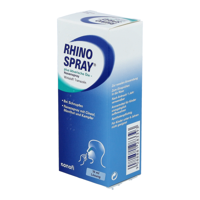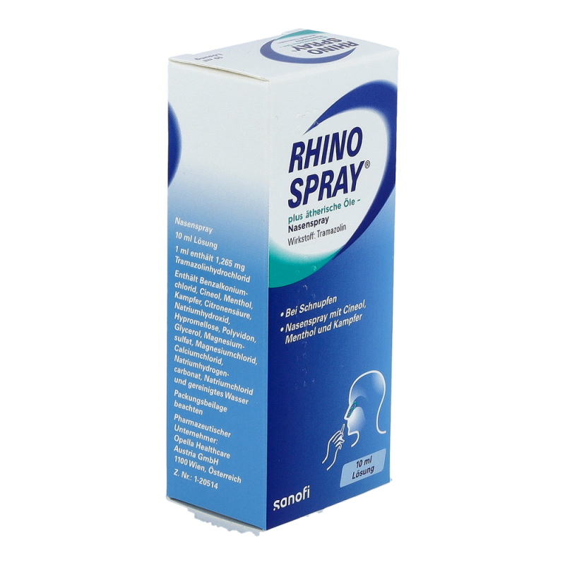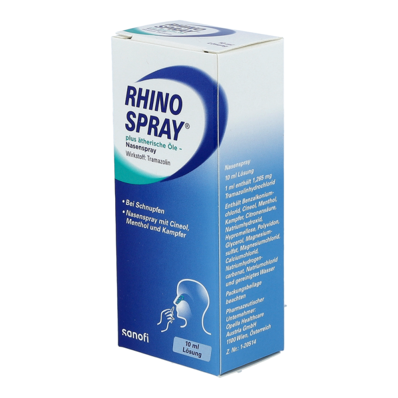 Rhinospray plus dient zur Schleimhautabschwellung bei akutem allergischem oder nichtallergischem Schnupfen. Rhinospray plus enthält als medizinisch wirksamen Bestandteil Tramazolinhydrochlorid. Dieser Wirkstoff bewirkt bei Schnupfen ein Abschwellen der Nasenschleimhaut. Schon kurz nach dem Einsprühen in die Nase werden die verlegten Luftwege wieder frei. Ätherische Öle verstärken das Gefühl der freien Nasenatmung. Die Wirkung tritt rasch ein und hält mehrere Stunden an. Der Feindosierer erzeugt einen feinen, dichten Sprühnebel. Er benetzt auch versteckte Schleimhautbuchten in der Nase und dringt bis zu den Mündungen der Nasennebenhöhlen vor.