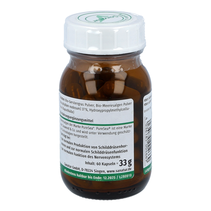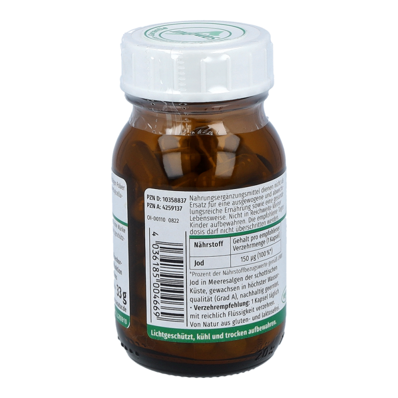 Sanatur Bio Jod Kapseln 150 mcg helfen vor allem bei der Bildung der Schilddrüsenhormone. Der tägliche Jodbedarf bei Erwachsenen liegt bei ca. 150 µg Jod. Das Produkt enthält ausschließlich biologische Inhaltsstoffe.