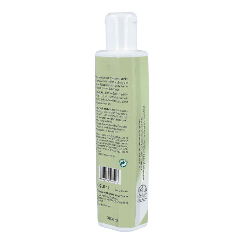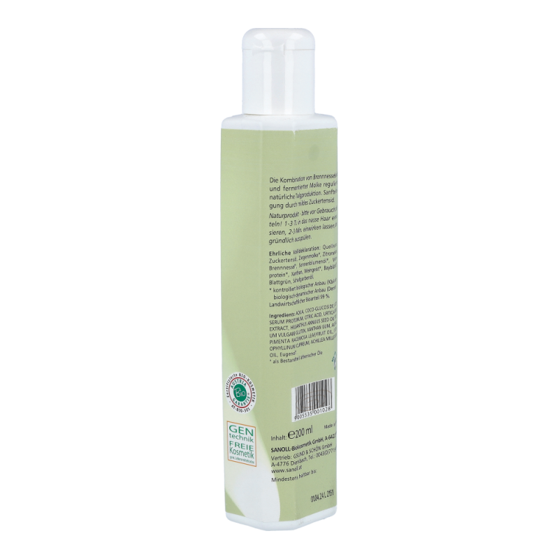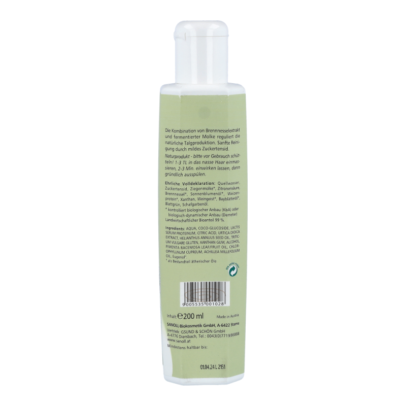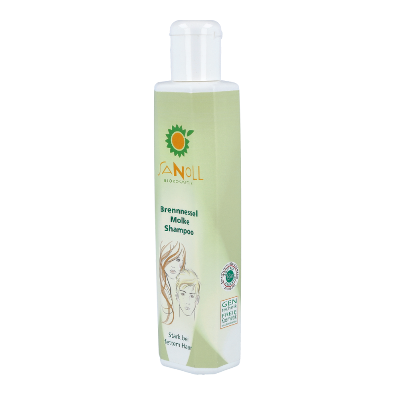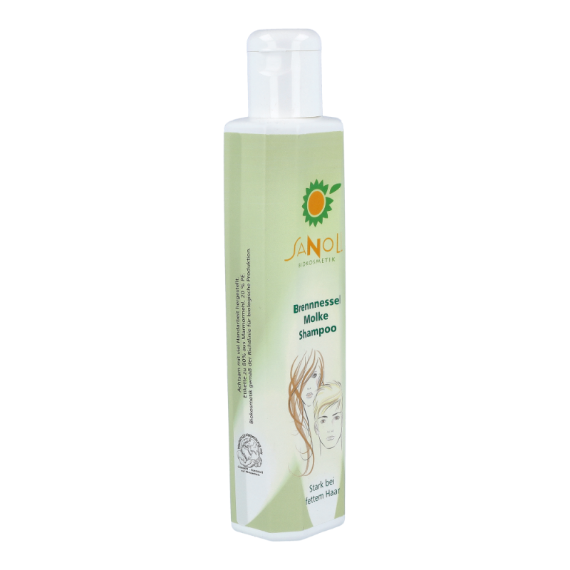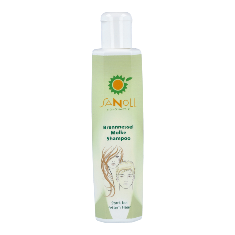 Sanoll Molke Brennnessel Shampoo hilf bei fettem Haar und bei fetten Schuppen. Die Kombination von Brennnessel-Extrakt und fermentierter Ziegenmolke regulieren die natürliche Talgproduktion und sind oft auch hilfreich bei „fetten Schuppen“.