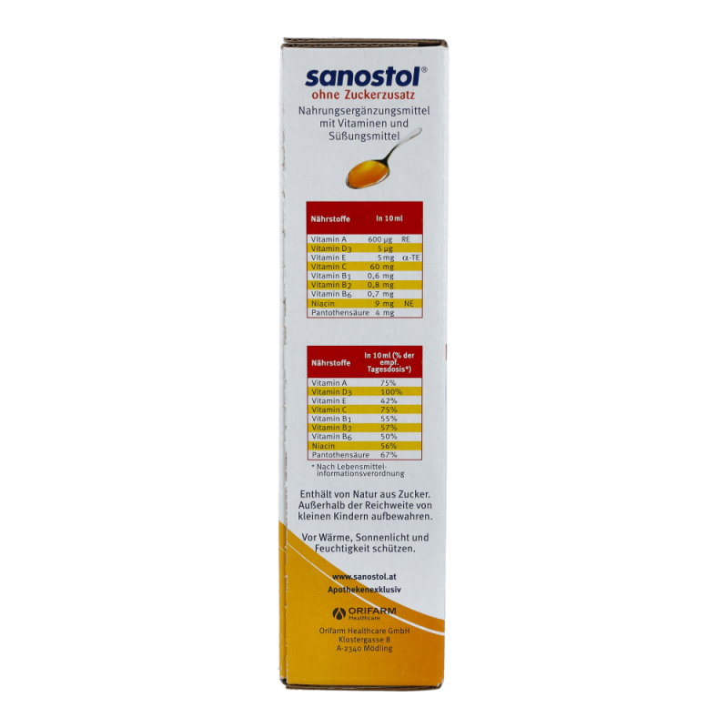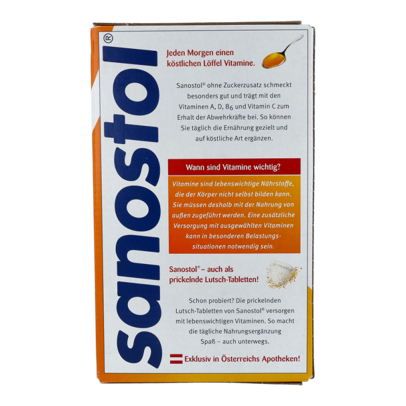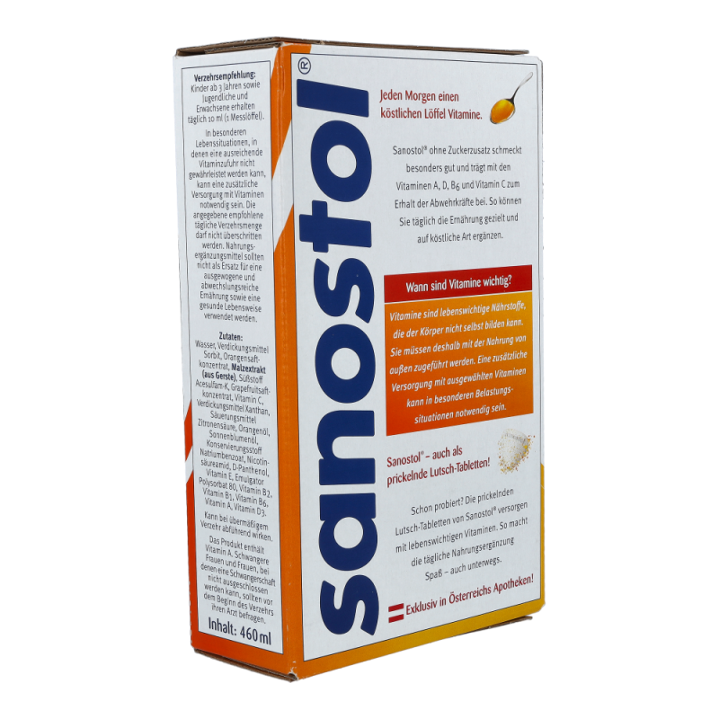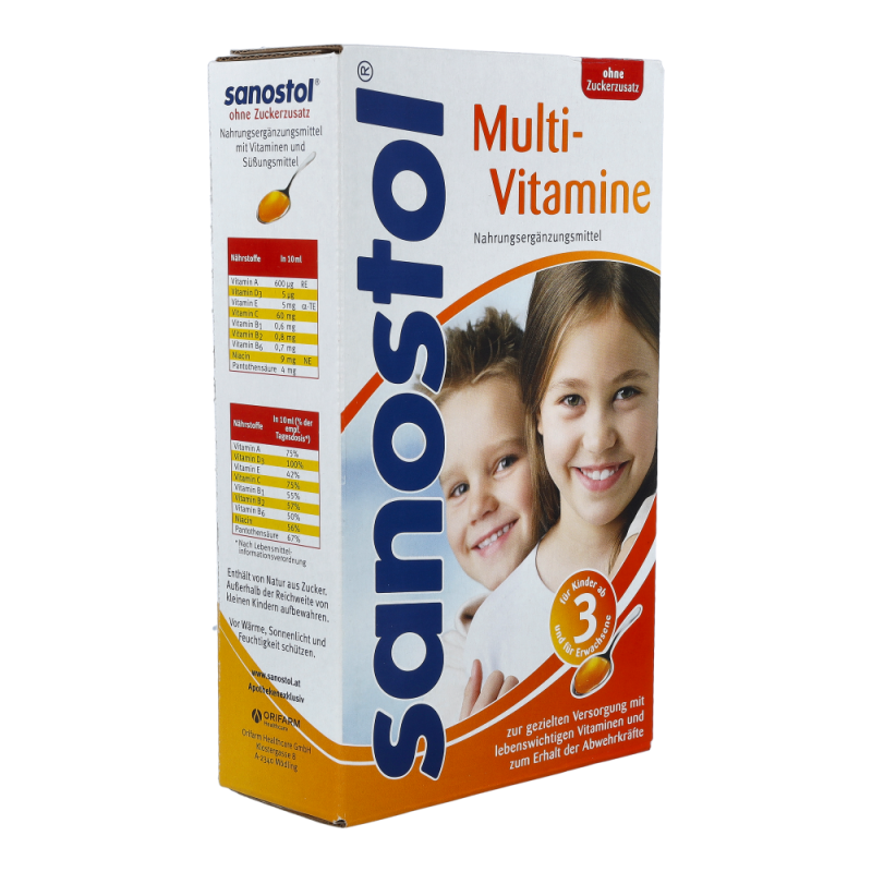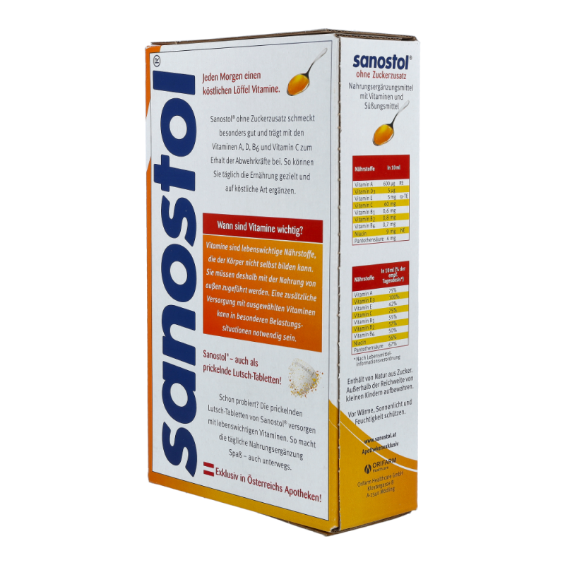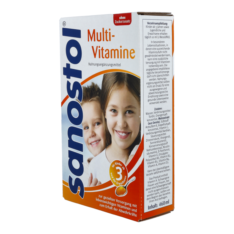 Sanostol Multivitaminsaft ohne Zucker enthält 9 verschiedene Vitamine und überzeugt mit besonders gutem Geschmack. Der Saft ermöglicht es den Körper gezielt durch Vitamine, welche der Körper nicht selbst bilden kann zu ergänzen.