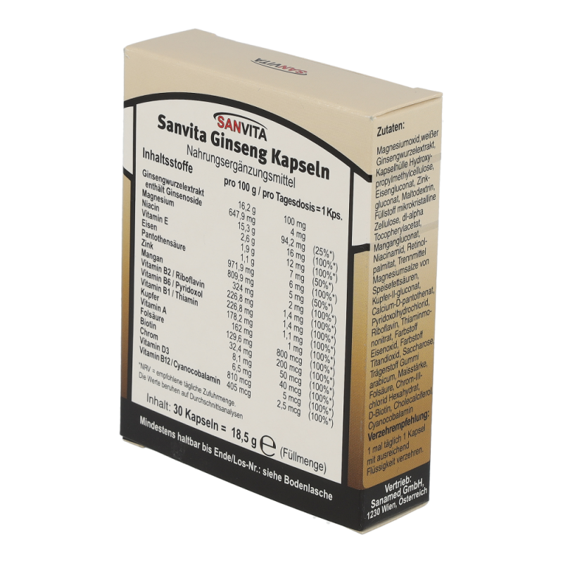Sanvita® Ginseng Kapseln sind ein hochwertiges Kombinationspräparat zur Erhaltung und Stärkung Ihrer geistigen und körperlichen Leistungsfähigkeit.