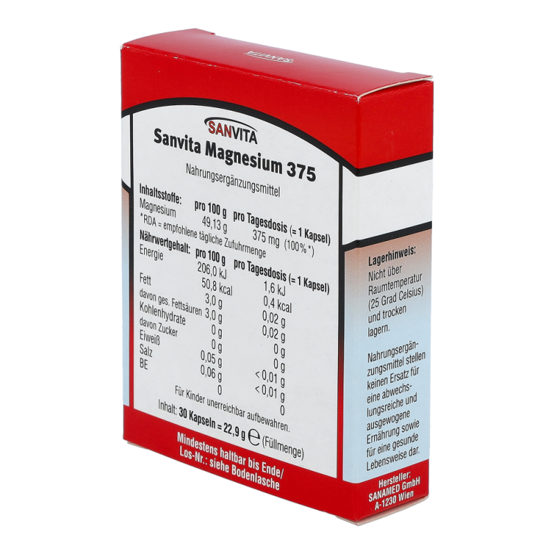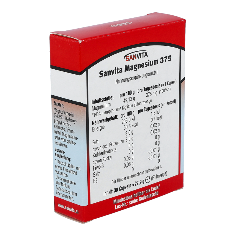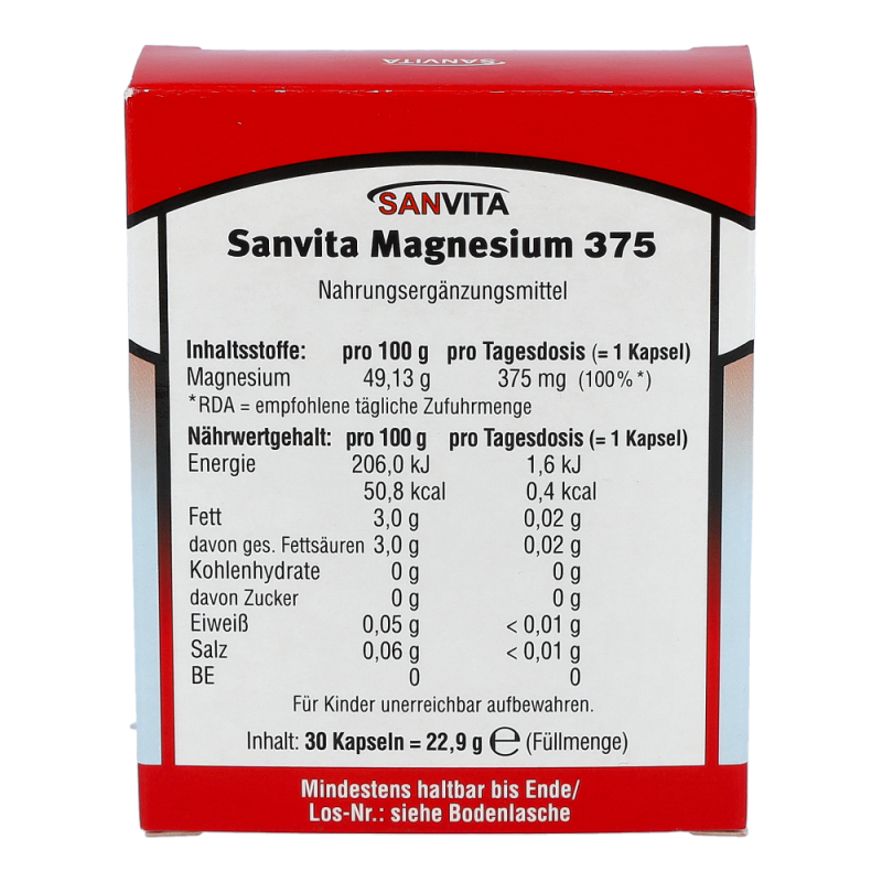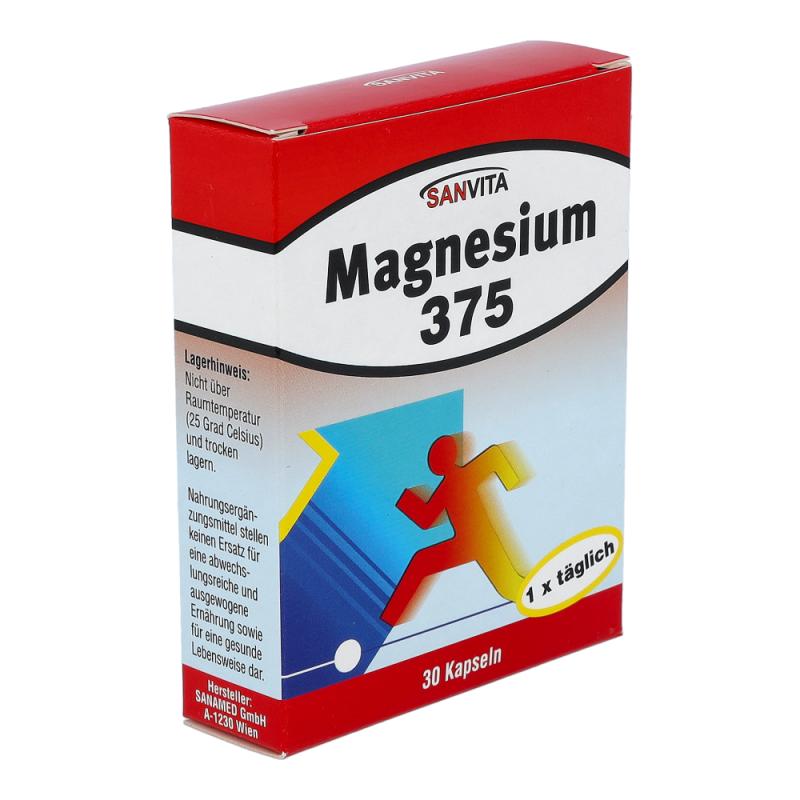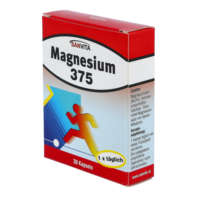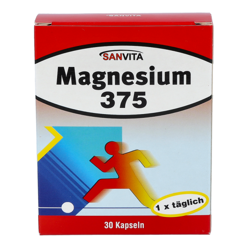 Sanvita Magnesium Kapseln 375 sorgt für die Aktivierung nahezu aller Enzyme für den Energiestoffwechsel und ist von hoher Bedeutung für Muskelkontraktion, Herz und Nerven.