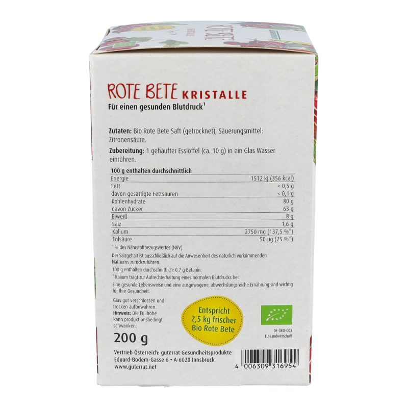 Rote Bete-Pulver trägt weiters zur Ansiedlung gesundheitsfördernder Mikroorganismen im Dünn- und Dickdarmbereich bei, hemmt das Wachstum schädlicher Bakterien im Darm und fördert die Leberregeneration.