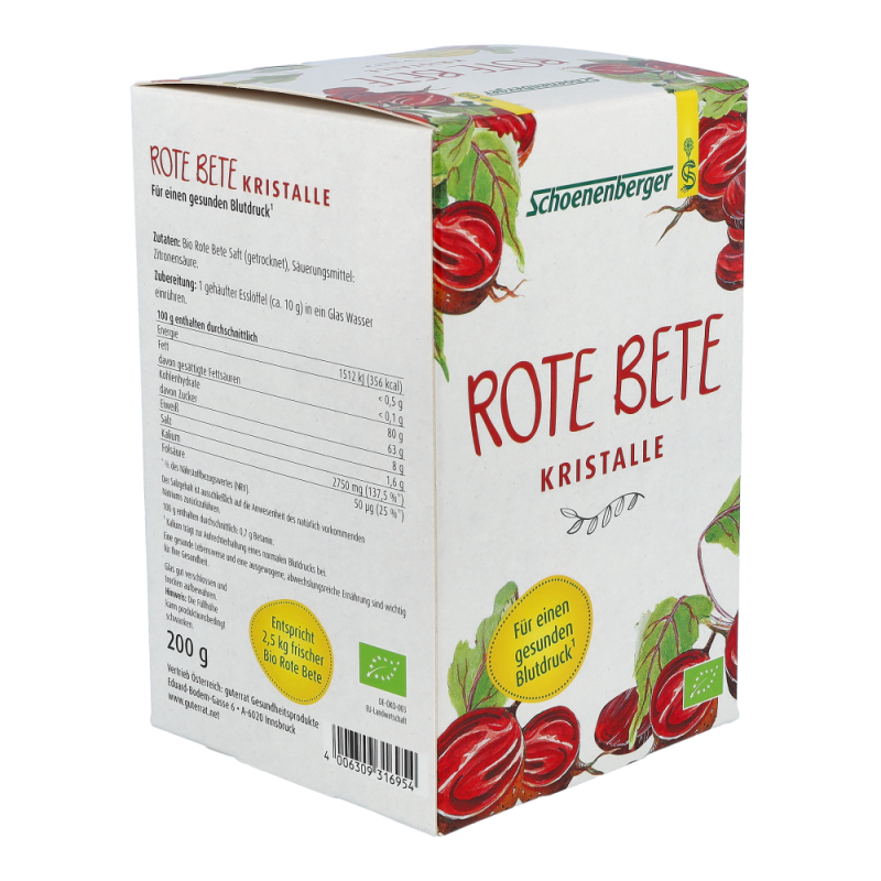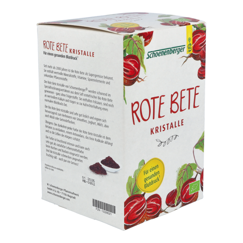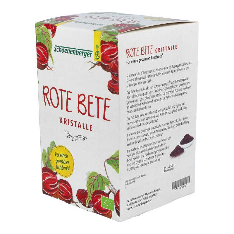 Besonders in Kombination mit Vitamin C hat Rote Bete-Pulver eine stoffwechselfördernde, entschlackende und verjüngende Wirkung. Es steigert in dieser Kombination die Vitalität und Leistungsfähigkeit der Körper- und Gehrinzellen.