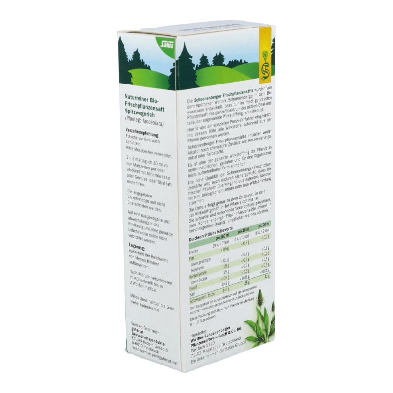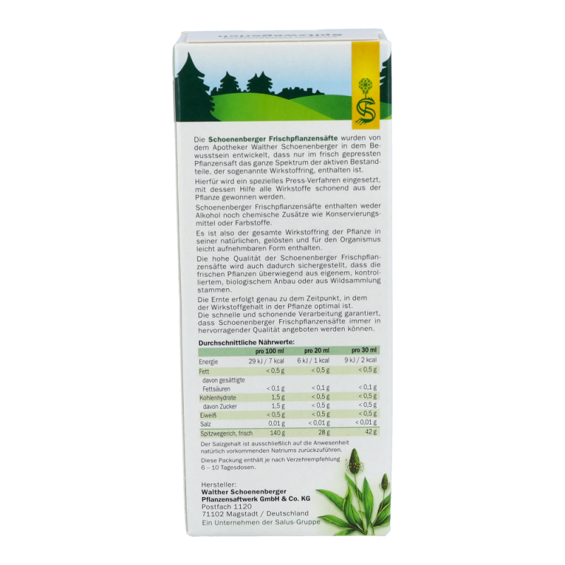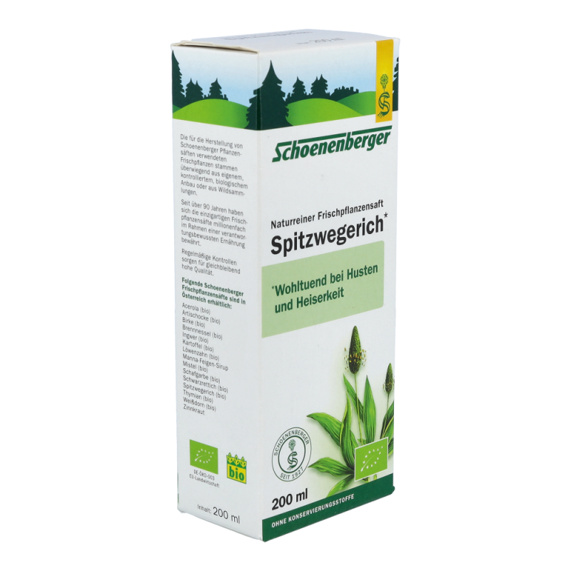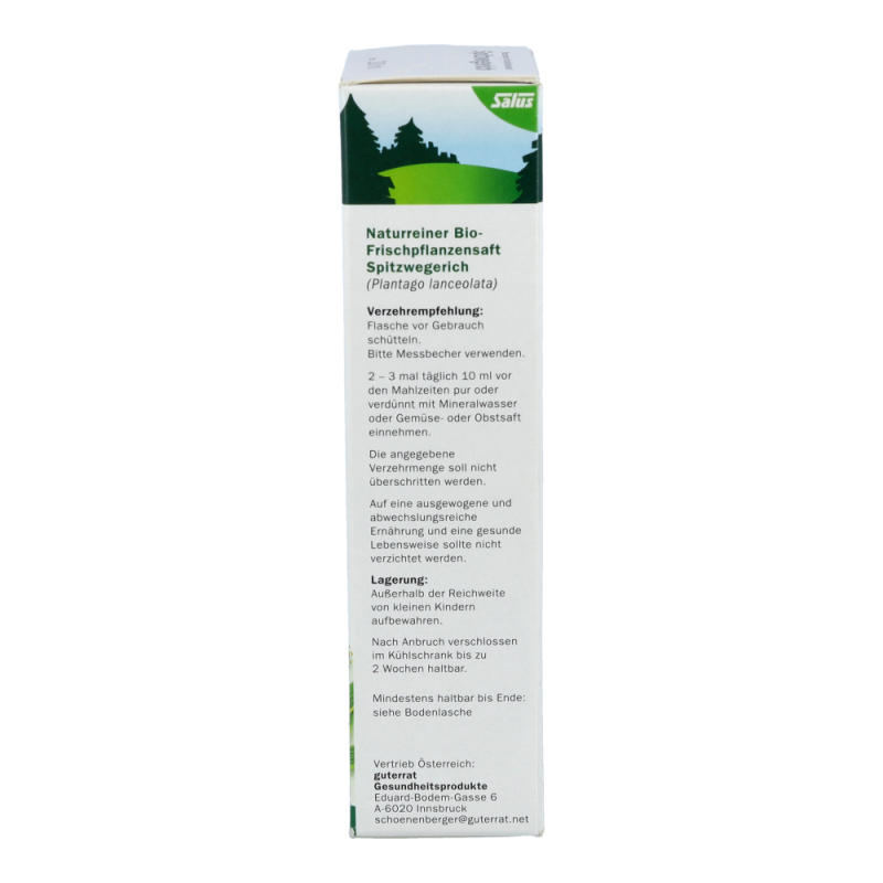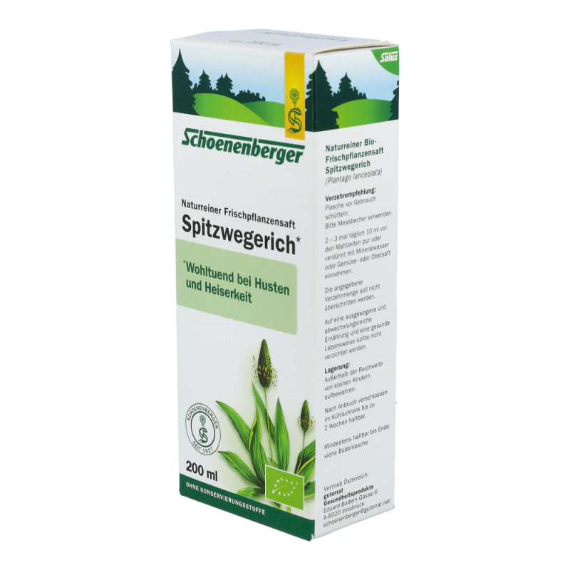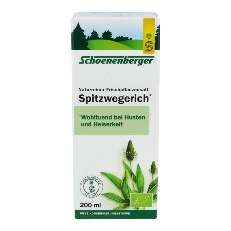 Naturreiner Frischpflanzensaft Spitzwegerich. Wohltuend bei Husten und Heiserkeit.