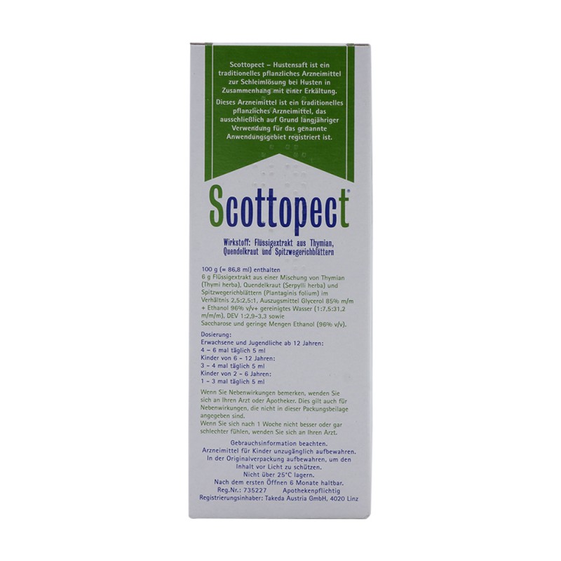 Scottopect Hustensaft ist ein traditionelles pflanzliches Arzneimittel zur Schleimlösung bei Husten in Zusammenhang mit einer Erkältung.