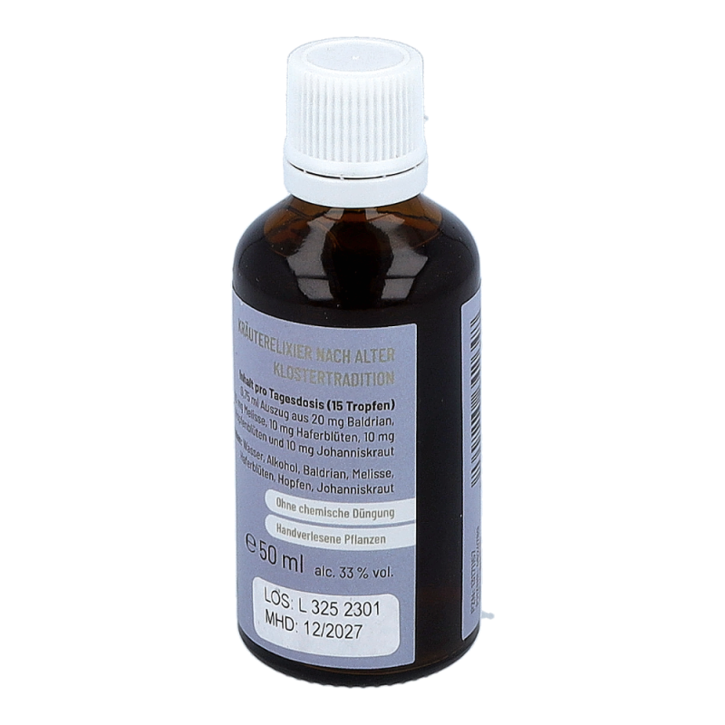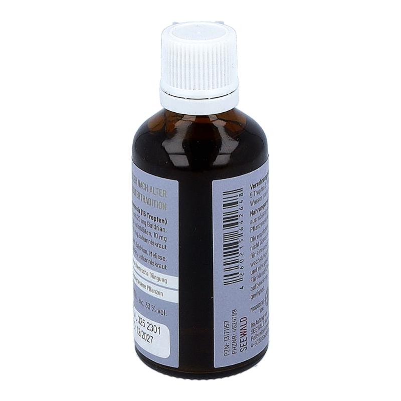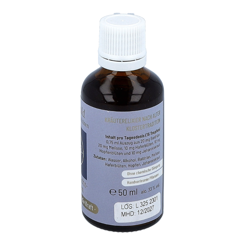Die besänftigende Melisse mit ihrem zitronigen Duft vermittelt Gelassenheit. Denkt man an die zarten rosa Blüten des Baldrians ist schnell nachvollziehbar, dass er Stille und Ruhe in die Gedanken einkehren lässt. Haferblüte, hellgrün leuchtend wenn sich die Halme im Wind bewegen, unterstützt Ausgeglichenheit. Hopfen, bestrebt sich hoch ins Licht zu ranken, bringt Leichtigkeit und Fröhlichkeit. Johanniskraut entfaltet seine wohltuenden Eigenschaften wie die Kraft des Sonnenlichts.