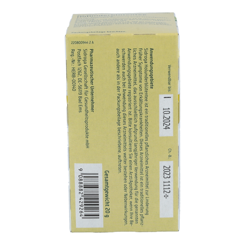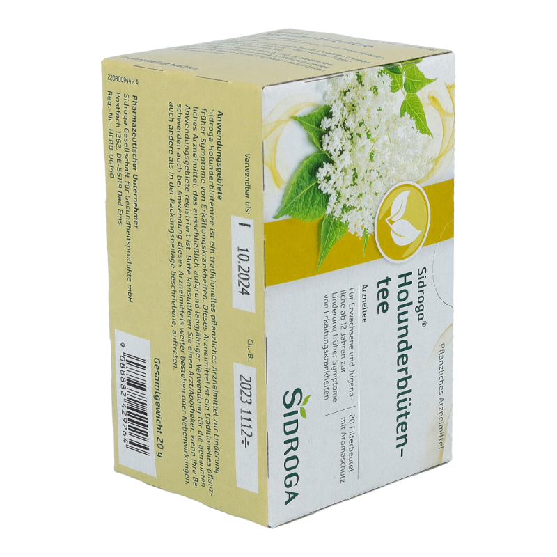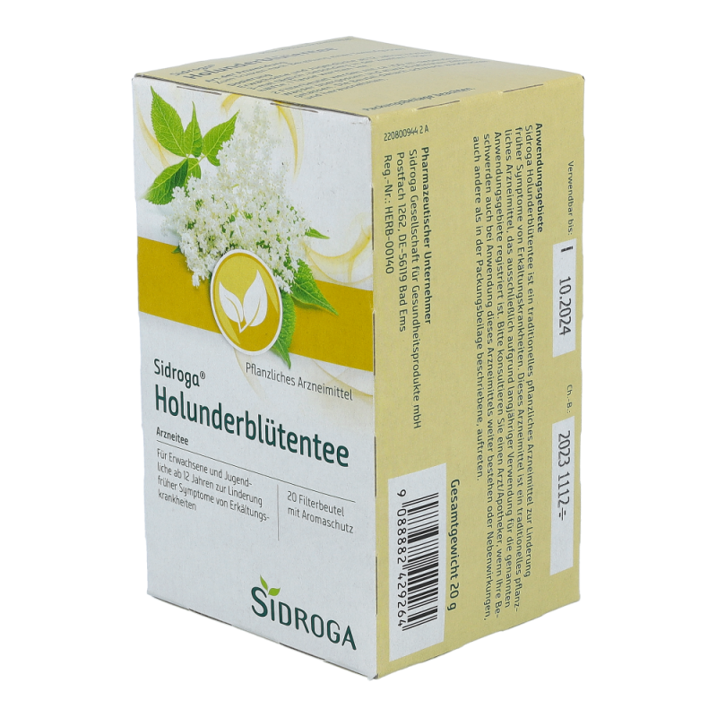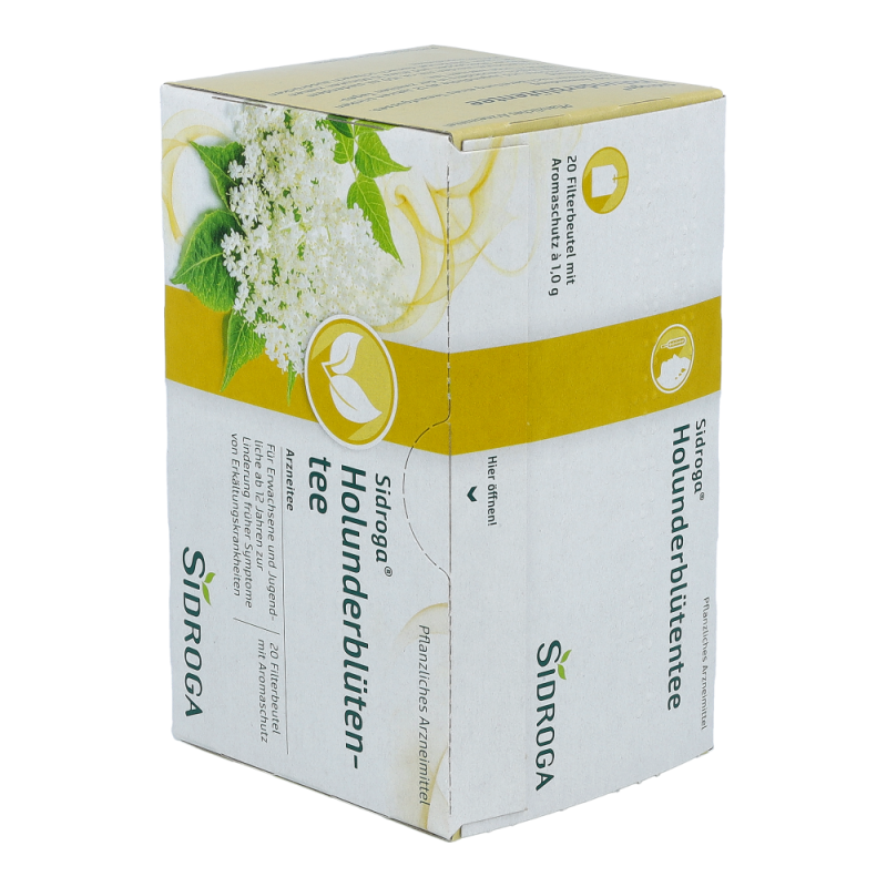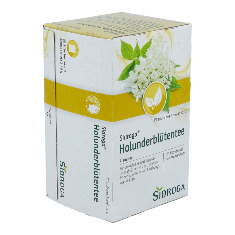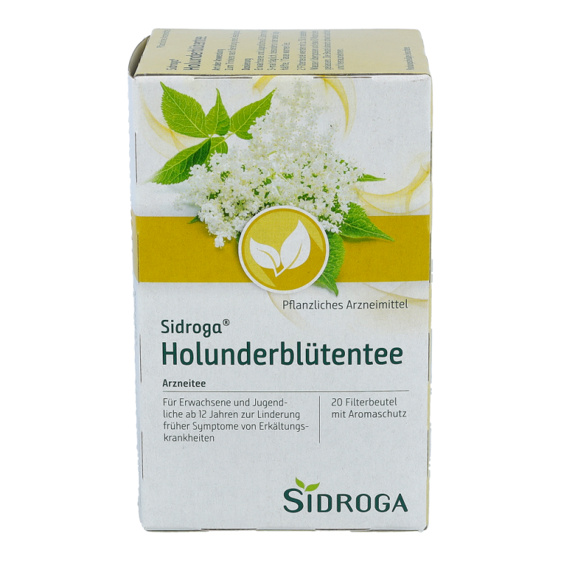 Sidroga® Holunderblütentee ist ein Arzneitee zur Anwendung bei fiebrigen Erkältungskrankheiten.