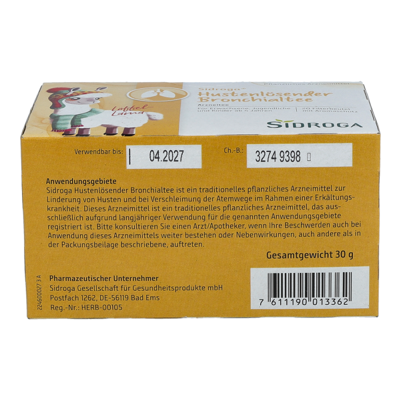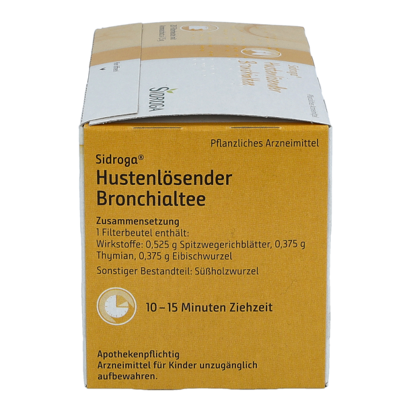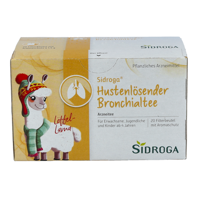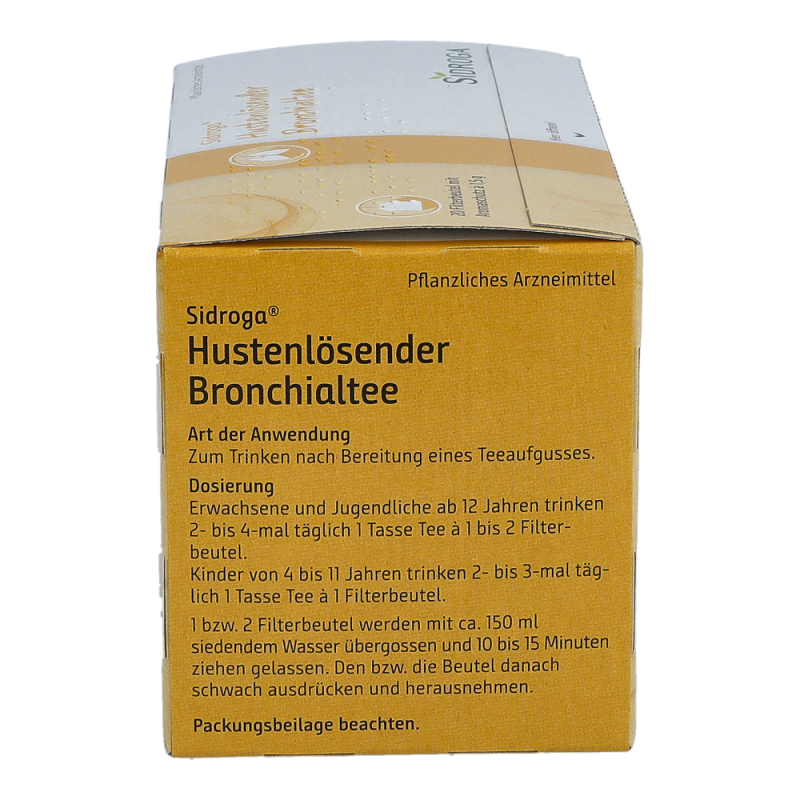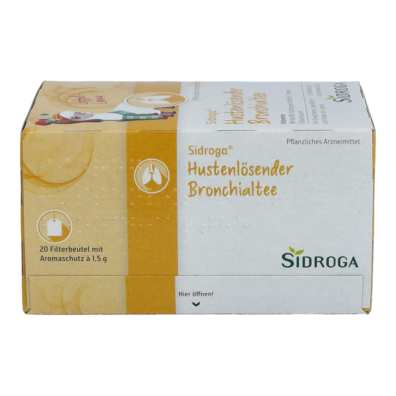Sidroga Hustenlösender Bronchialtee ist ein tradi- tionelles pflanzliches Arzneimittel zur Linderung von Husten und bei Verschleimung der Atemwege im Rahmen einer Erkältungskrankheit.