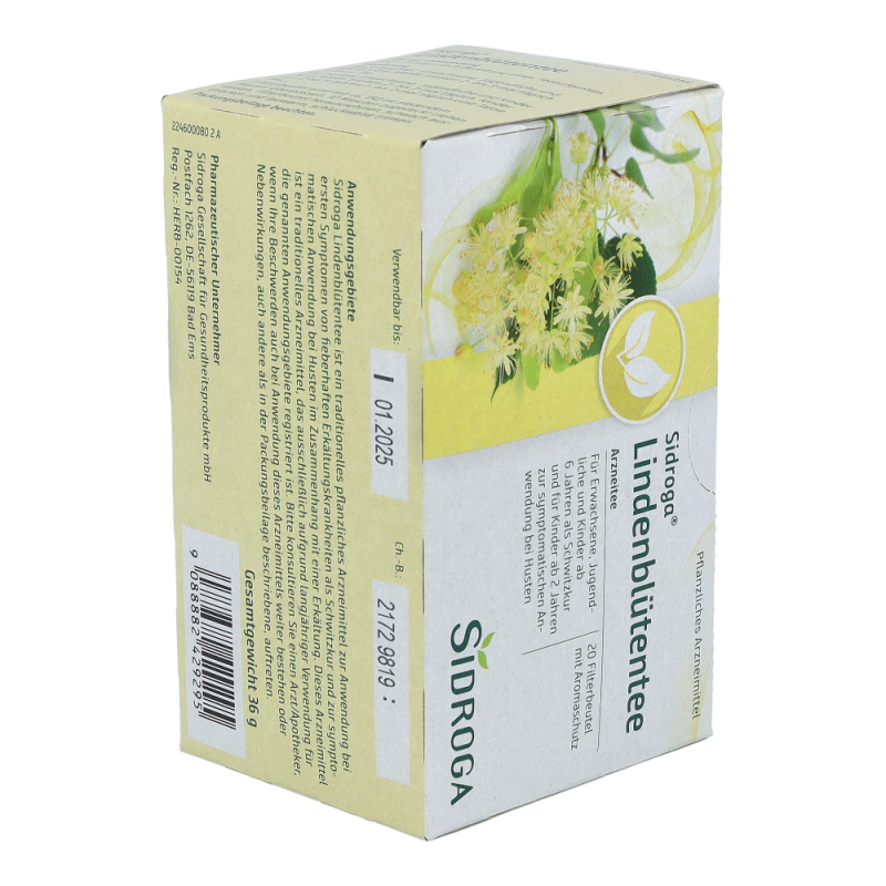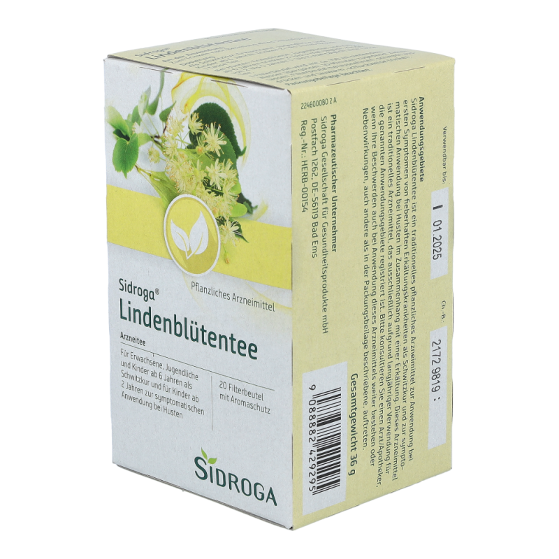Sidroga Lindenblütentee dient der Anwendung bei ersten Symptomen von fieberhaften Erkältungskrankheiten. Der Tee wirkt als Schwitzkur und zur hilft außerdem bei Husten in Zusammenhang mit einer Erkältung.
