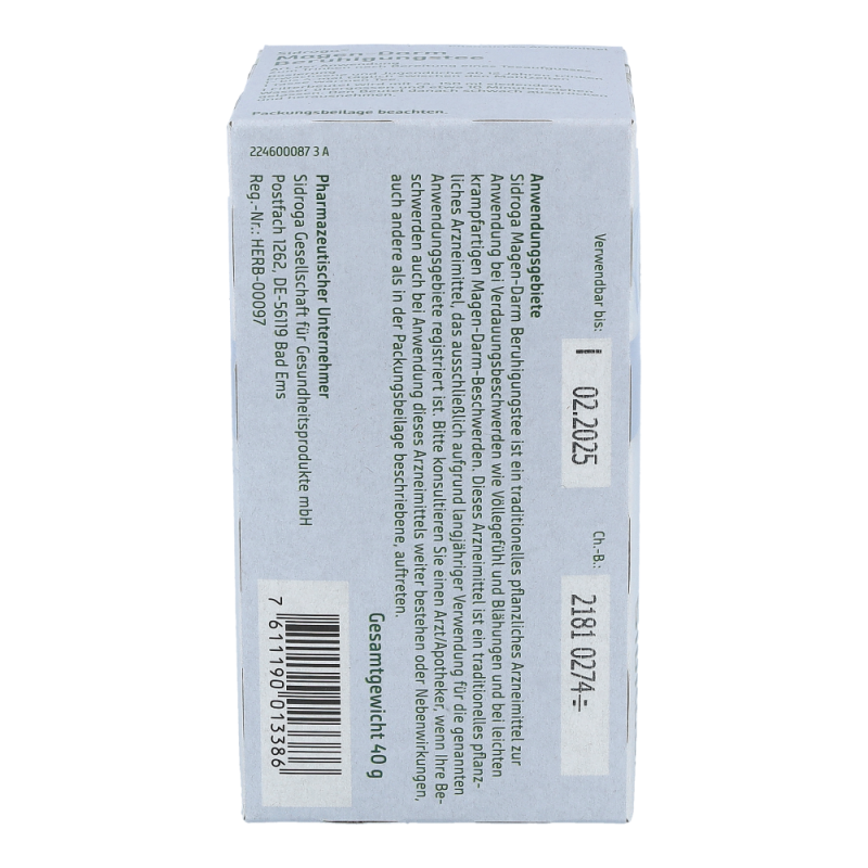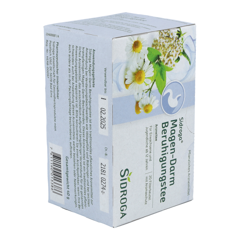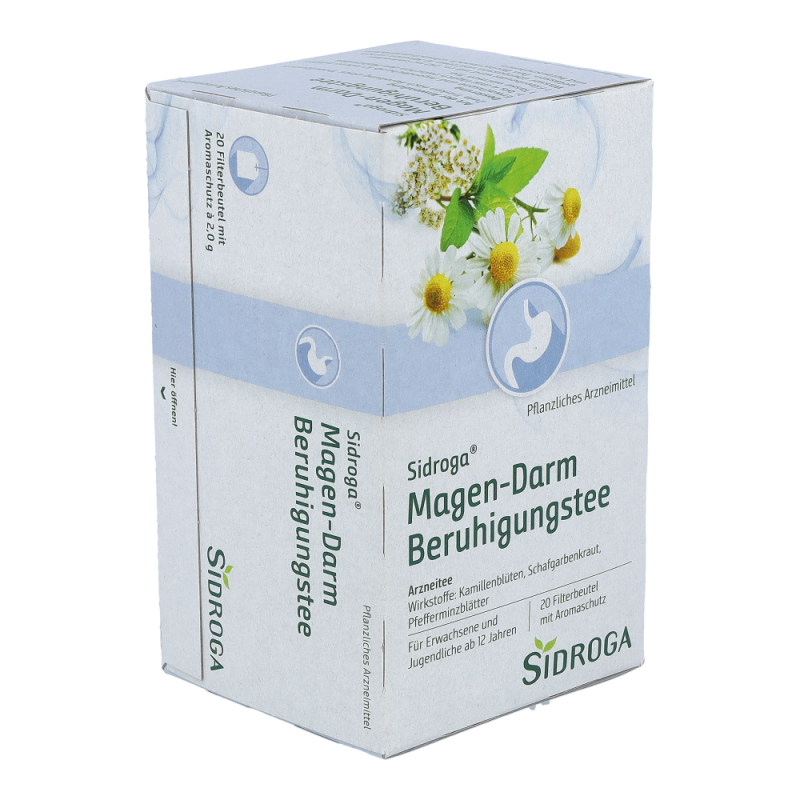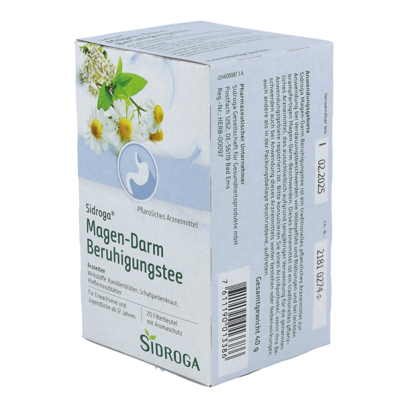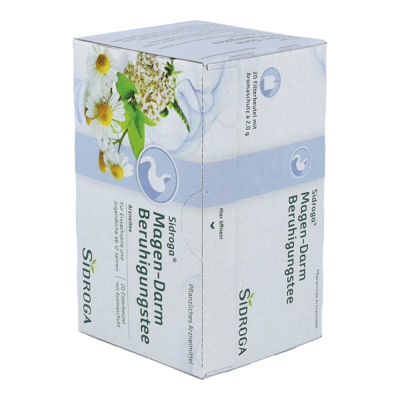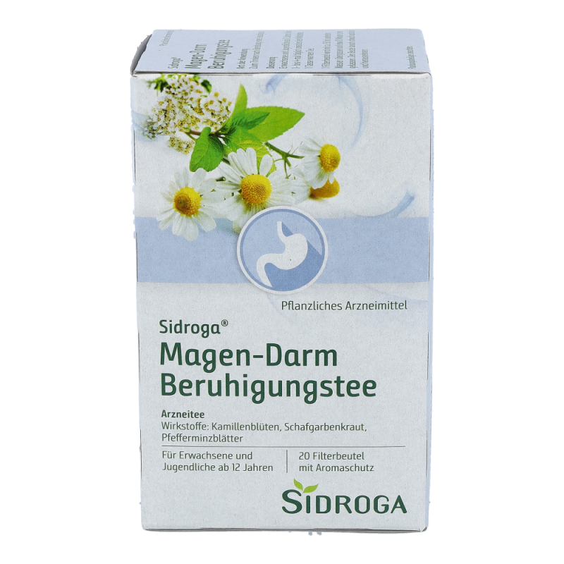 Sidroga Magen-Darm Verdauungstee enthält die Bitterkräuter Kalmuswurzelstock, Schafgarbenkraut und Tausendgüldenkraut, die verdauungsfördernd wirken. Die Inhaltsstoffe der Melissenblätter und Kamillenblüten wirken beruhigend und krampflösend. Sidroga Magen-Darm Verdauungstee ist ein traditionelles pflanzliches Arzneimittel zur Anwendung bei Magen-Darm-Beschwerden und Verdauungsbeschwerden wie Völlegefühl, Aufstoßen und Blähungen sowie zur Appetitanregung.Die Anwendung dieses traditionellen pflanzlichen Arzneimittels in den genannten Anwendungsgebieten beruht ausschließlich auf langjähriger Verwendung..