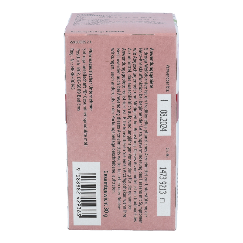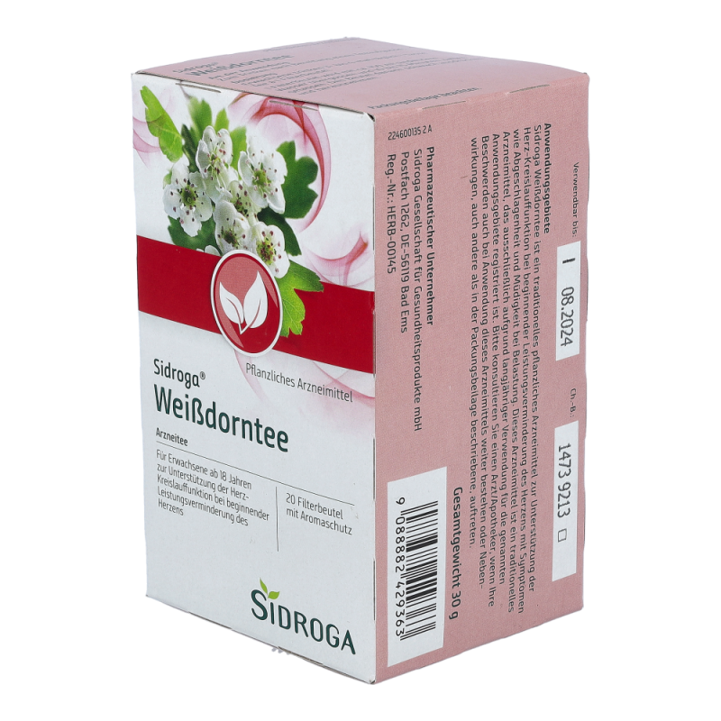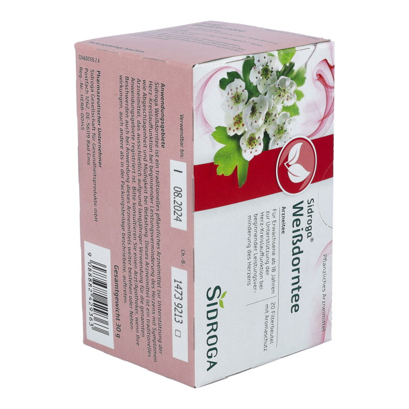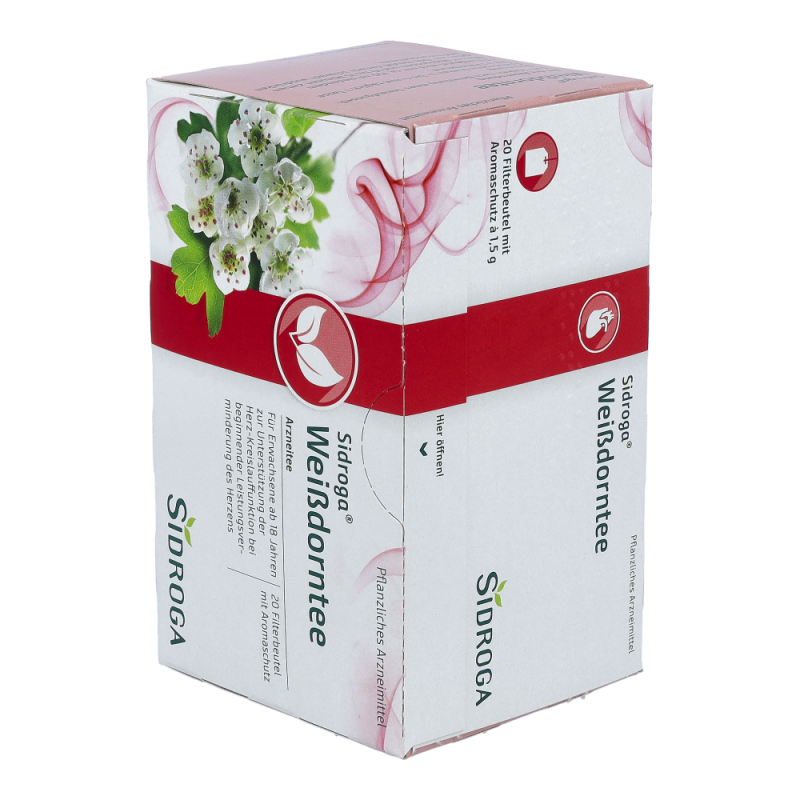 Sidroga Weißdorntee ist ein traditionelles pflanzliches Arzneimittel zur Unterstützung der Herz-Kreislauffunktion bei beginnender Leistungsverminderung des Herzens mit Symptomen wie Abgeschlagenheit und Müdigkeit bei Belastung.