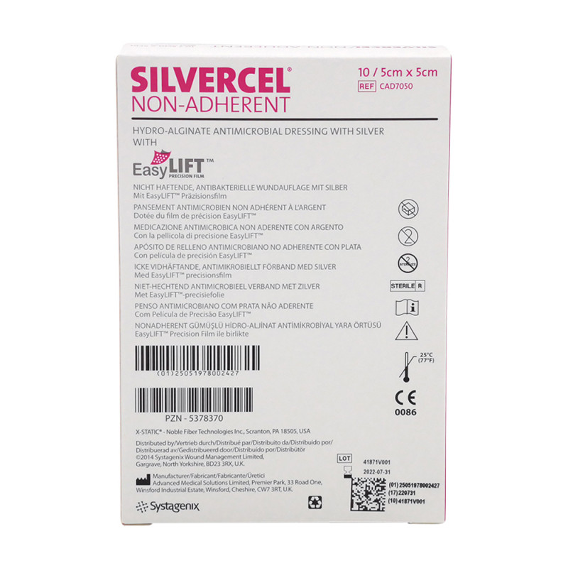 Silvercel Non-Adherent Hydroalginat mit Silber beherrscht Infektionen und minimiert die Traumatisierung beim Verbandwechseldank einzigartiger nichthaftender Beschichtung.Damit nichts zurückbleibt außer einer sauberen Wunde.