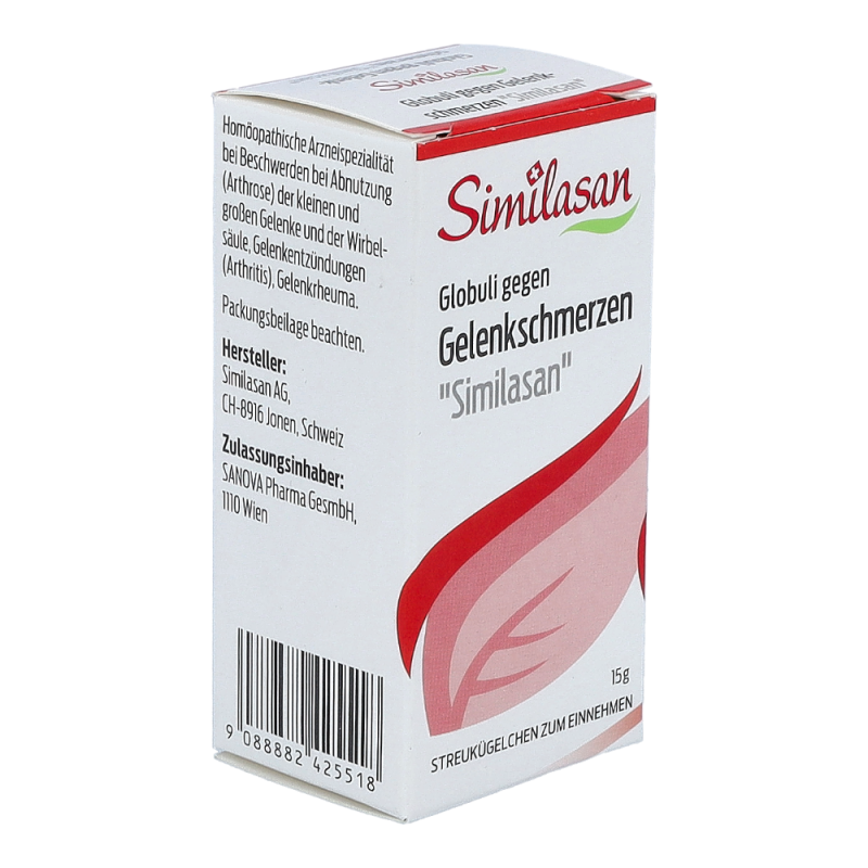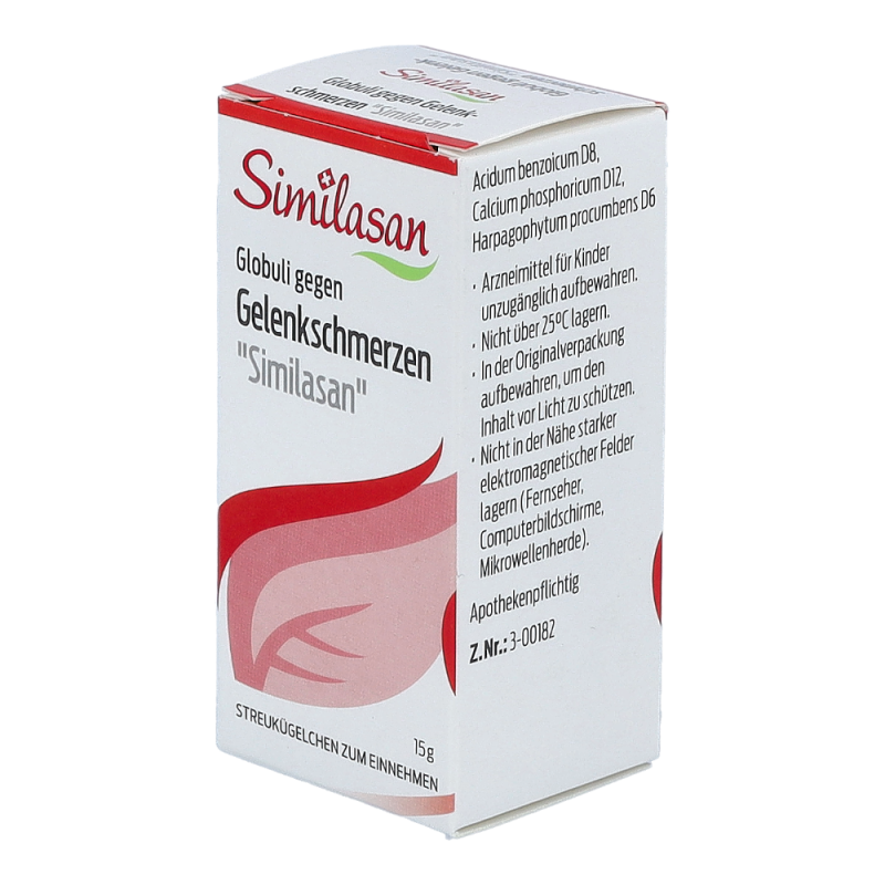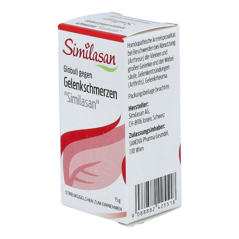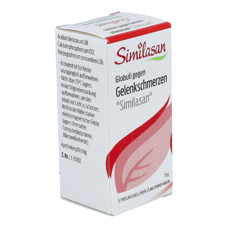 Globuli gegen Gelenkschmerzen „Similasan“ sind ein homöopathisches Arzneimittel. Die Homöopathie versteht sich als Regulationstherapie bei akuten und chronischen Krankheiten. Die Anwendungsgebiete leiten sich von den homöopathischen Arzneimittelbildern ab. Dazu gehören: Beschwerden bei Abnutzung (Arthrose) der kleinen und großen Gelenke und der Wirbelsäule, Beschwerden bei Gelenkentzündungen (Arthritis) und Gelenkrheuma.