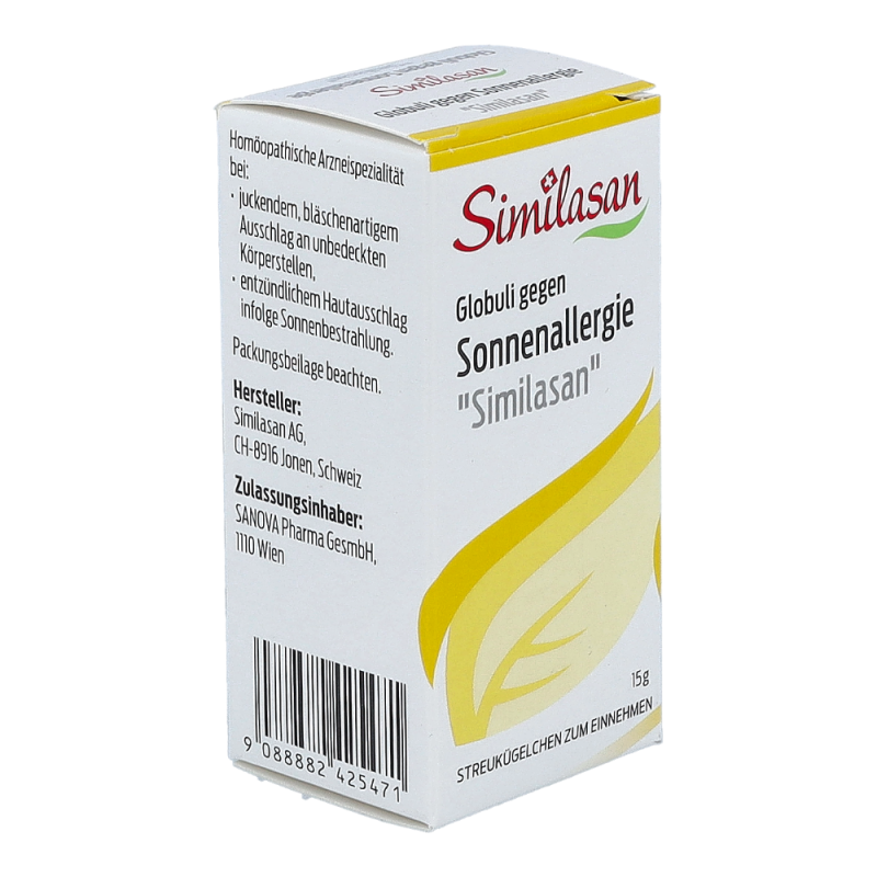 Similasan® Globuli gegen Sonnenallergie ist eine homöopathische Arzneispezialität in Tropfenform wird bei allergischen Hautreaktionen infolge von Sonnenbestrahlung eingesetzt.