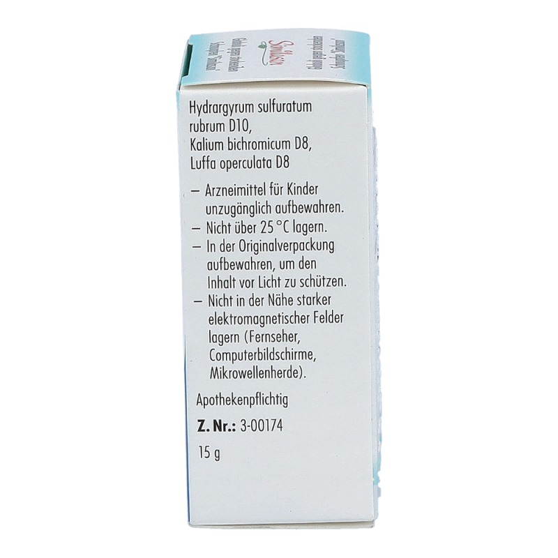 Hydrargyrum sulfuratum rubrum (Homöopathie), Kalium bichromicum (Homöopathie), Luffa operculata (Homöopathie), Xylit, Calciumcarbonat, Spuren von Lactose
