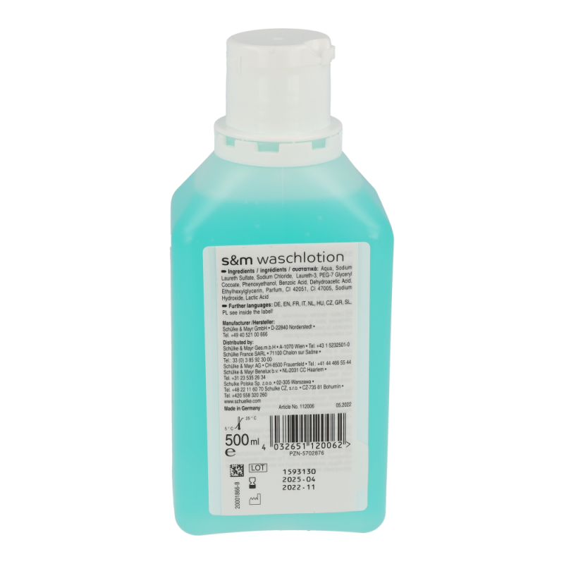 Seifenfreie Waschlotion auf Basis einer Kombination hautverträglicher Tenside und Pflegekomponenten. Hautschonend, wirkungsvoll reinigend mit guter Haut- und Schleimhautverträglichkeit. Seifen-/alkalifrei, pH-hautneutral und frisch duftend.