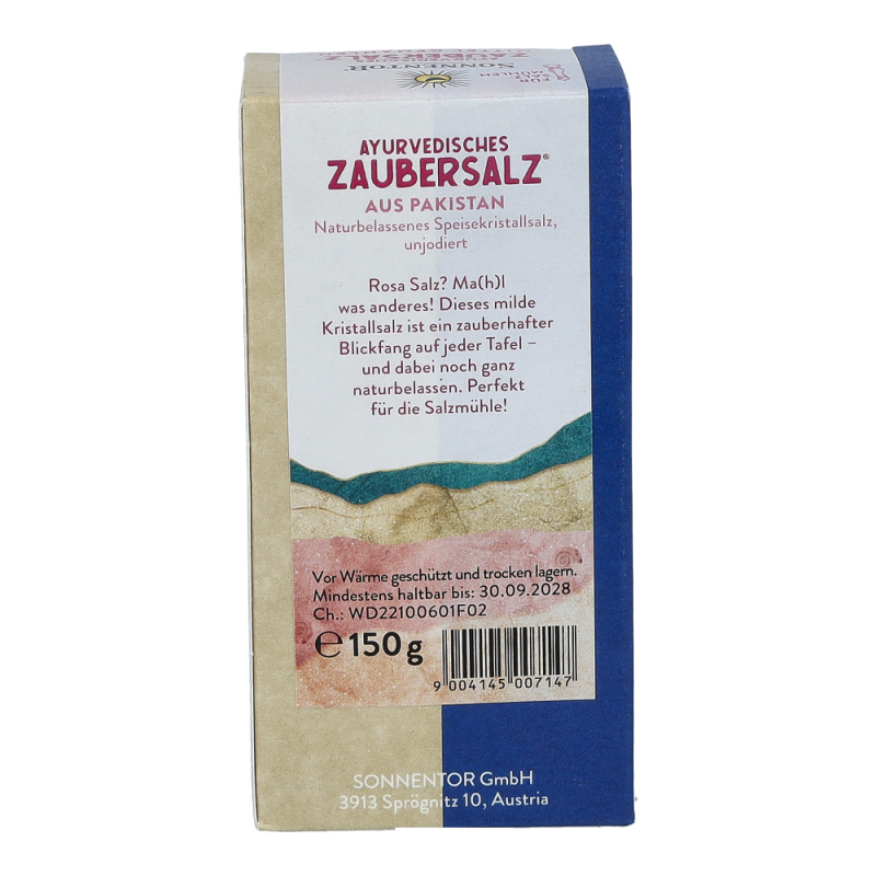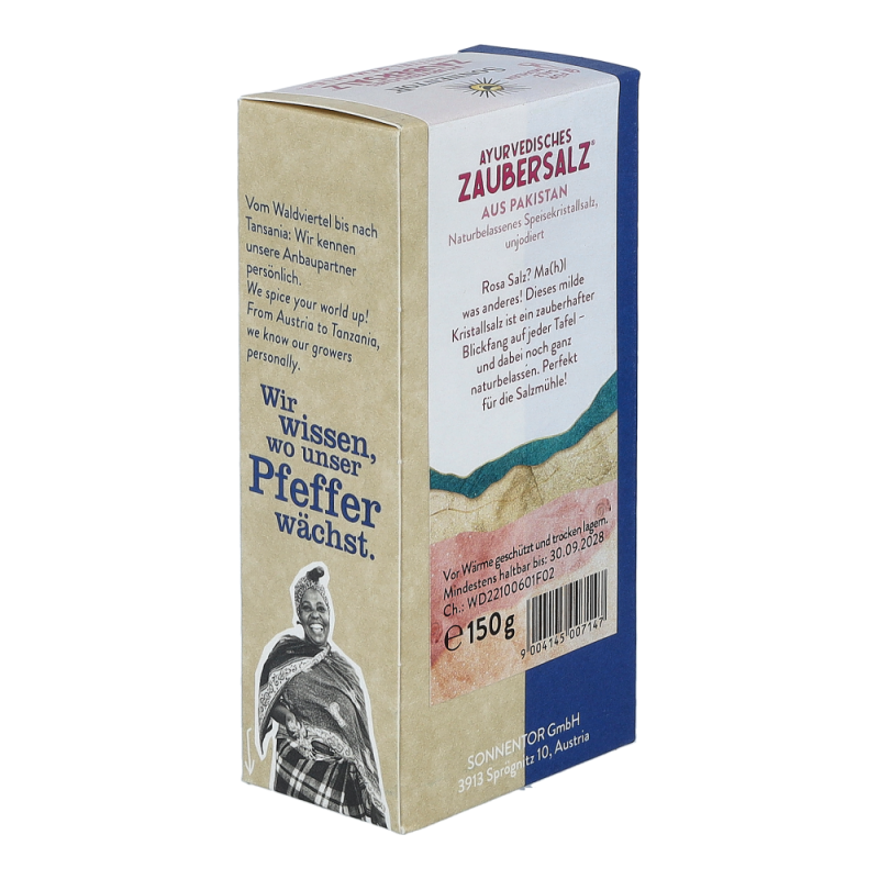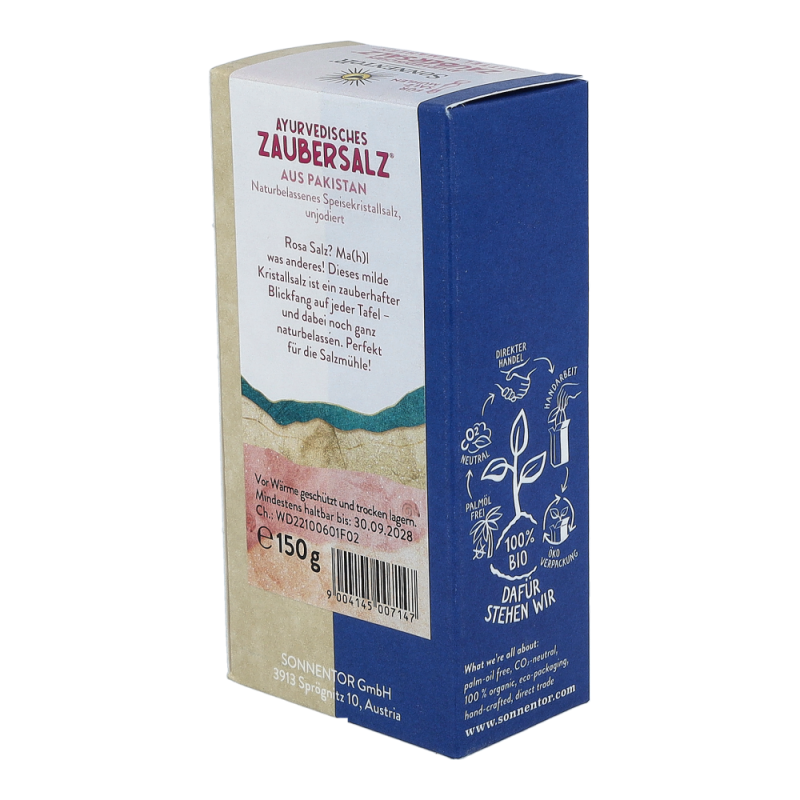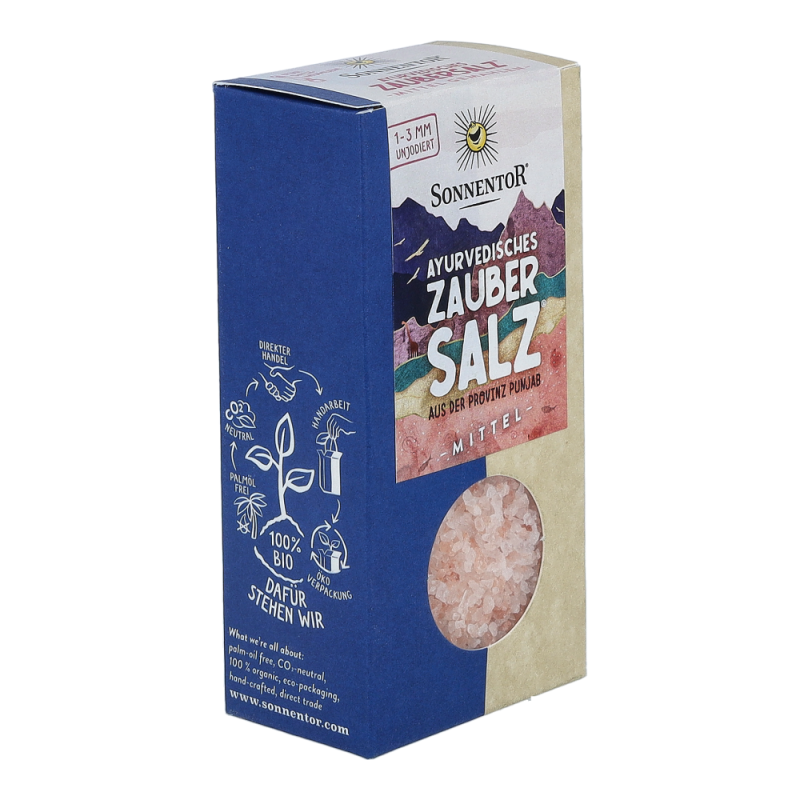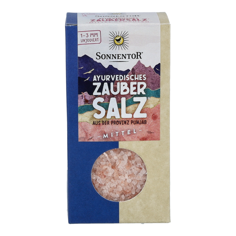 Das Sonnentor Ayurvedisches Zaubersalz® mit 150 g für Salzmühlen, rosa schimmernd und mild im Geschmack, ist bei der Austrocknung des Urmeeres vor 30 Millionen Jahren entstanden. Es wird noch heute traditionell in Punjab in Pakistan abgebaut – denn Salz ist nicht gleich Salz.