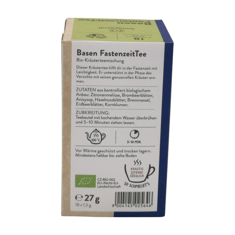Sonnentor Basen Fastenzeit Tee ist eine tonisierende Bio-Kräuterteemischung zur Unterstützung des Körpers während einer Fastenkur. Die blumige Note dieses Kräutertees ist der ideale Begleiter für Ihre kleine Auszeit.