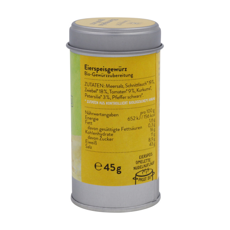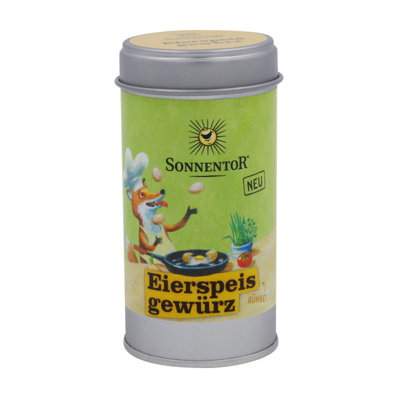 Das neue Lieblingsgewürz für alle die gerne herumeiern. Ob Rührei oder Omelette oder Nudelauflauf – in dieser Gewürzmischung mit Meersalz ist schon alles drin, was du brauchst. Schnittlauch, Kurkuma und Tomate zaubern Farbe auf den Teller und bringen Abwechslung ins Ei-nerlei. Da wird der Fuchs mit der Pfanne verrückt!