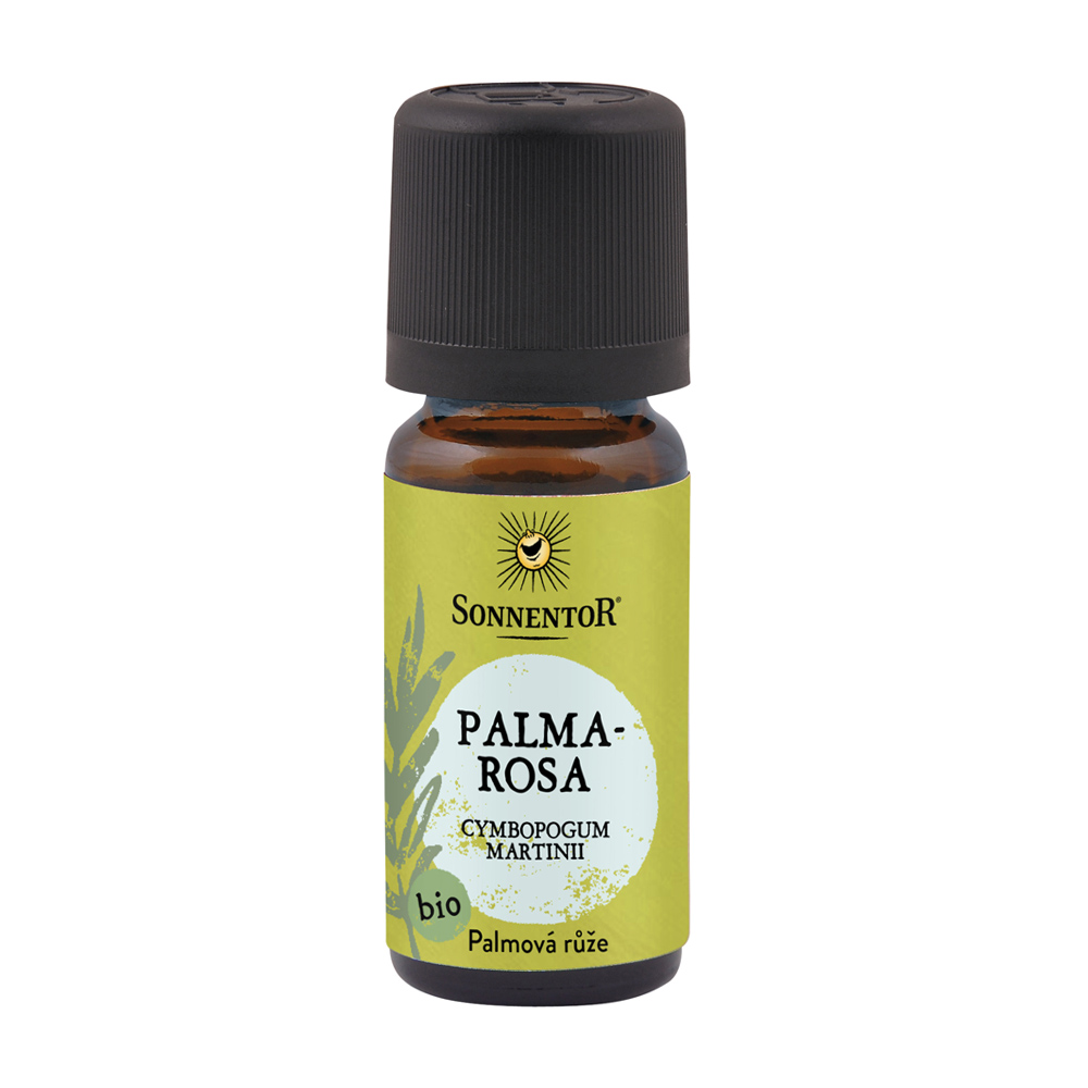 Cymbopogum martinii – 100% rein pflanzliches ätherisches Öl, aus kontrolliert biologischem Anbau! Palmarosa ist ein tropisches Gras. Der Duft ist ähnlich dem des Rosenöles. Die anregende Wirkung von Palmarosa fördert Ihre Konzentration und gibt Ihnen neue Kraft. Ätherische Öle von SONNENTOR sind hochwertige, naturreine Öle ohne künstliche oder synthetische Zusätze. Nur so kann sich die gesamte Wirkung von ätherischen Ölen entfalten. Ätherisches Öl ist kein fettes Öl. Als ätherisches Öl bezeichnet man Extrakte aus einer Pflanze, die einen für sie charakteristischen Duft haben. Die Anwendungsmöglichkeiten sind sehr vielfältig und reichen von der Pflege bis zum Wohlbefinden. Einige Beispiele: Duftlampe, Bäder, Raumduft, Sauna, zum Mischen von Körperölen,….