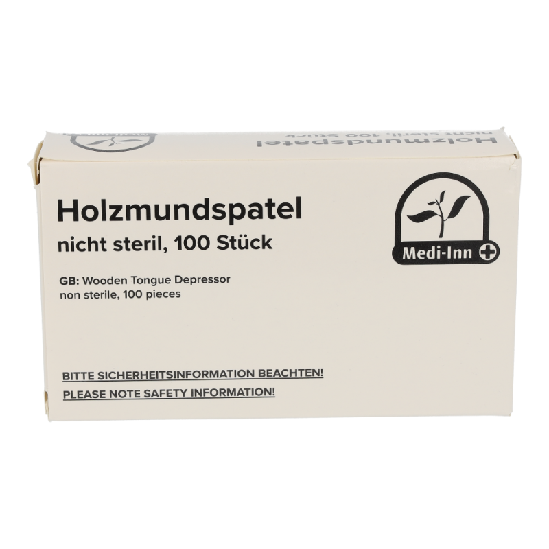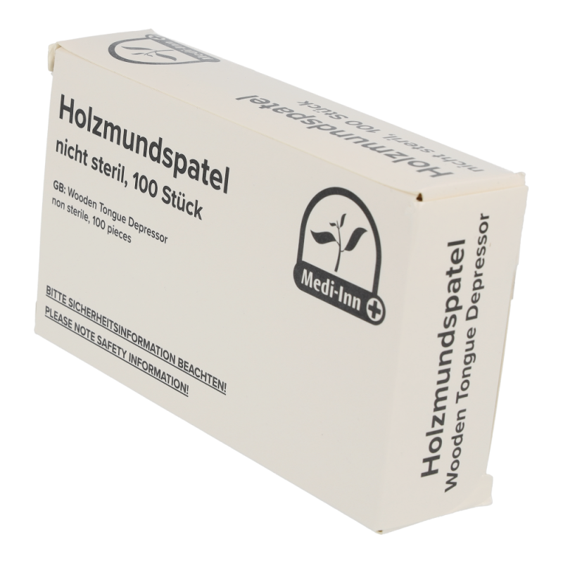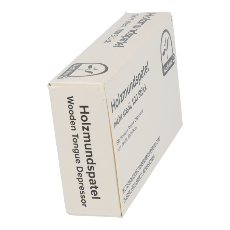 Der Holzmundspatel verfügt über abgerundete Ecken, die Verletzungen des Patienten verhindern.