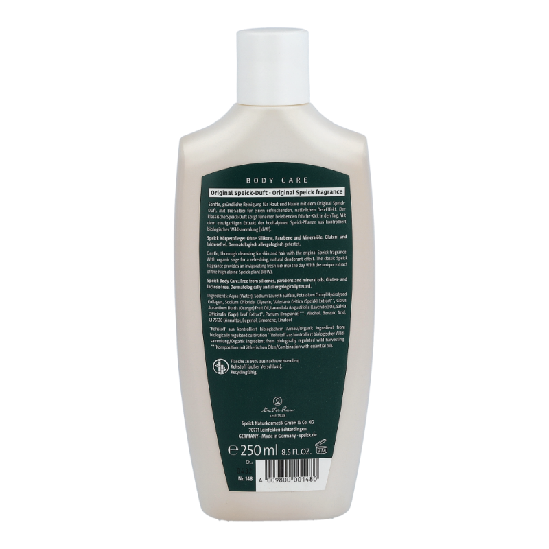 Sanfte, gründliche Reinigung für Haut und Haare mit dem Original Speick-Duft und Bio-Salbei für einen erfrischenden, natürli-chen Deo-Effekt. Der klassische Speick-Duft sorgt für einen belebenden Frische-Kick in den Tag. Gluten- und laktosefrei. Dermatologisch allergologisch getestet. .